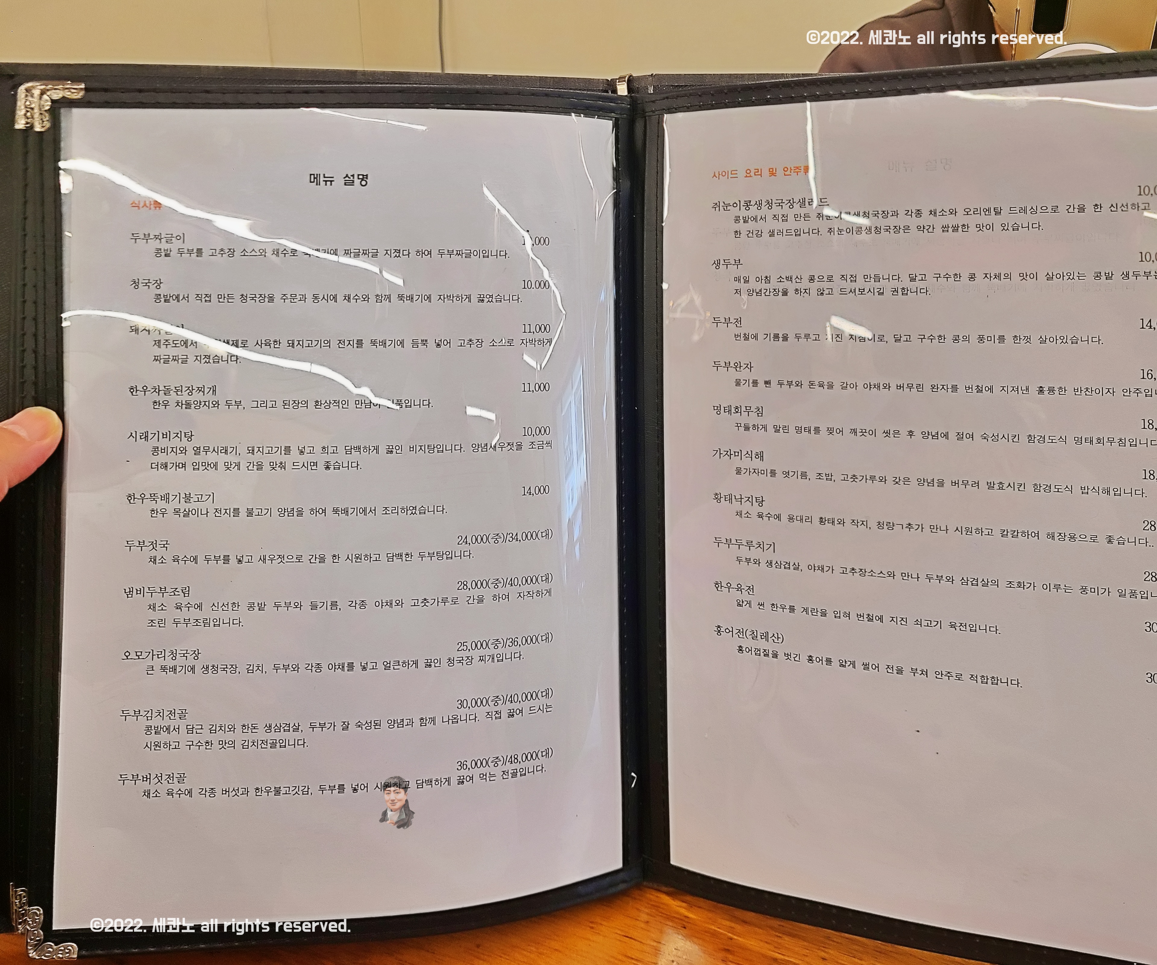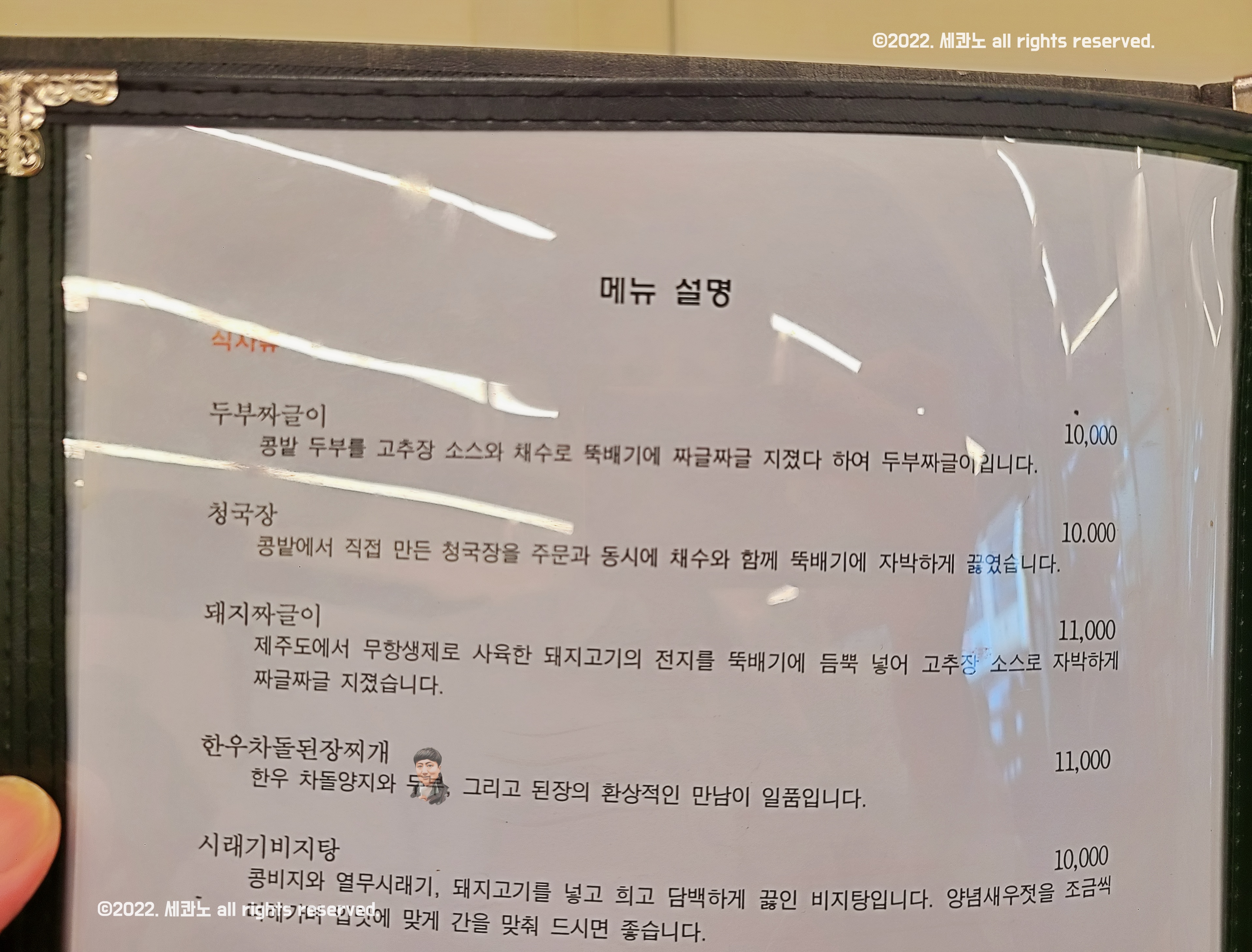 메뉴판 가장 뒤에는 메뉴 설명이 붙어 있었다.