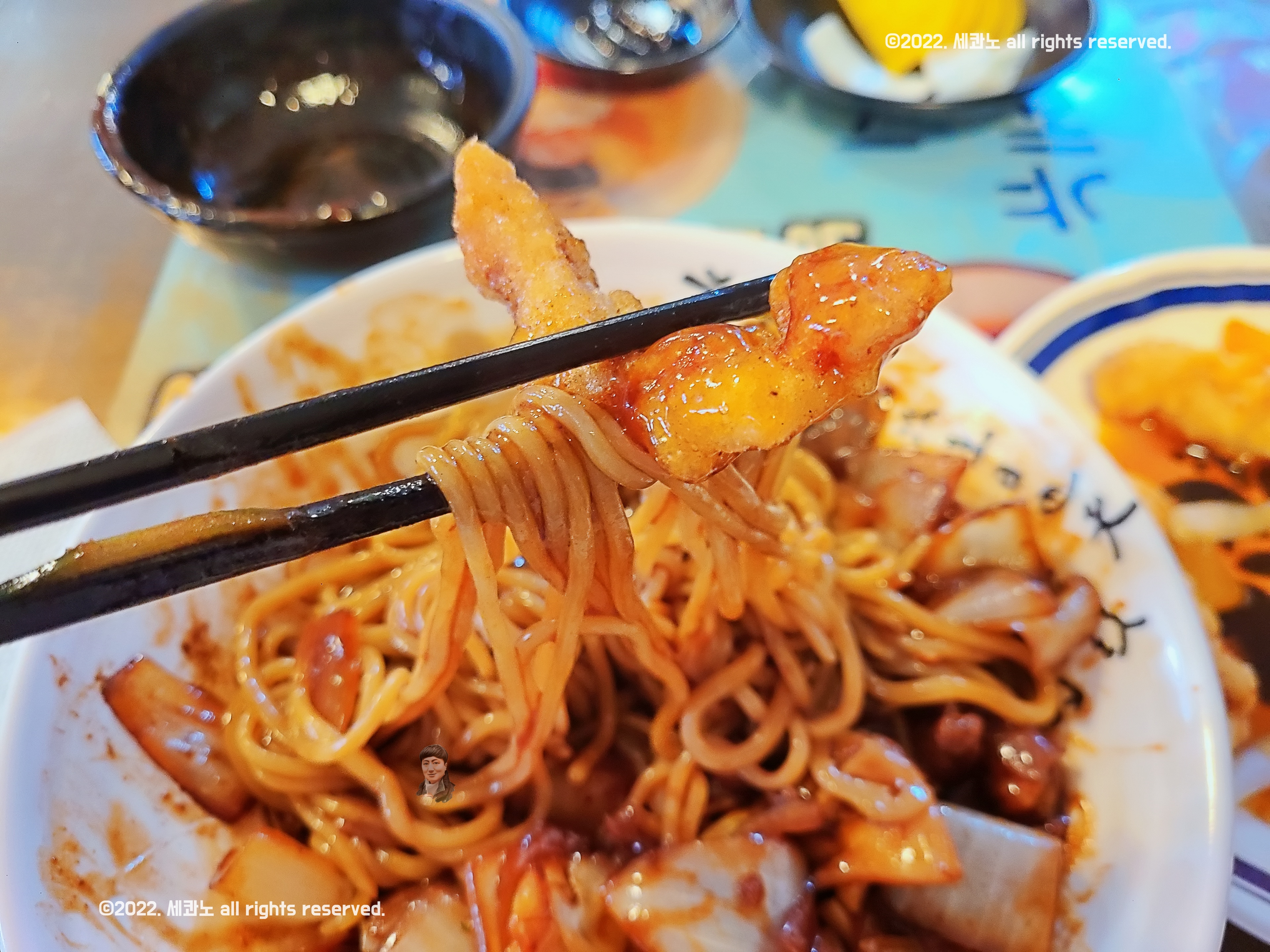 면이 양념을 잡 흡수하지 못하는 매끈한 편이었다.