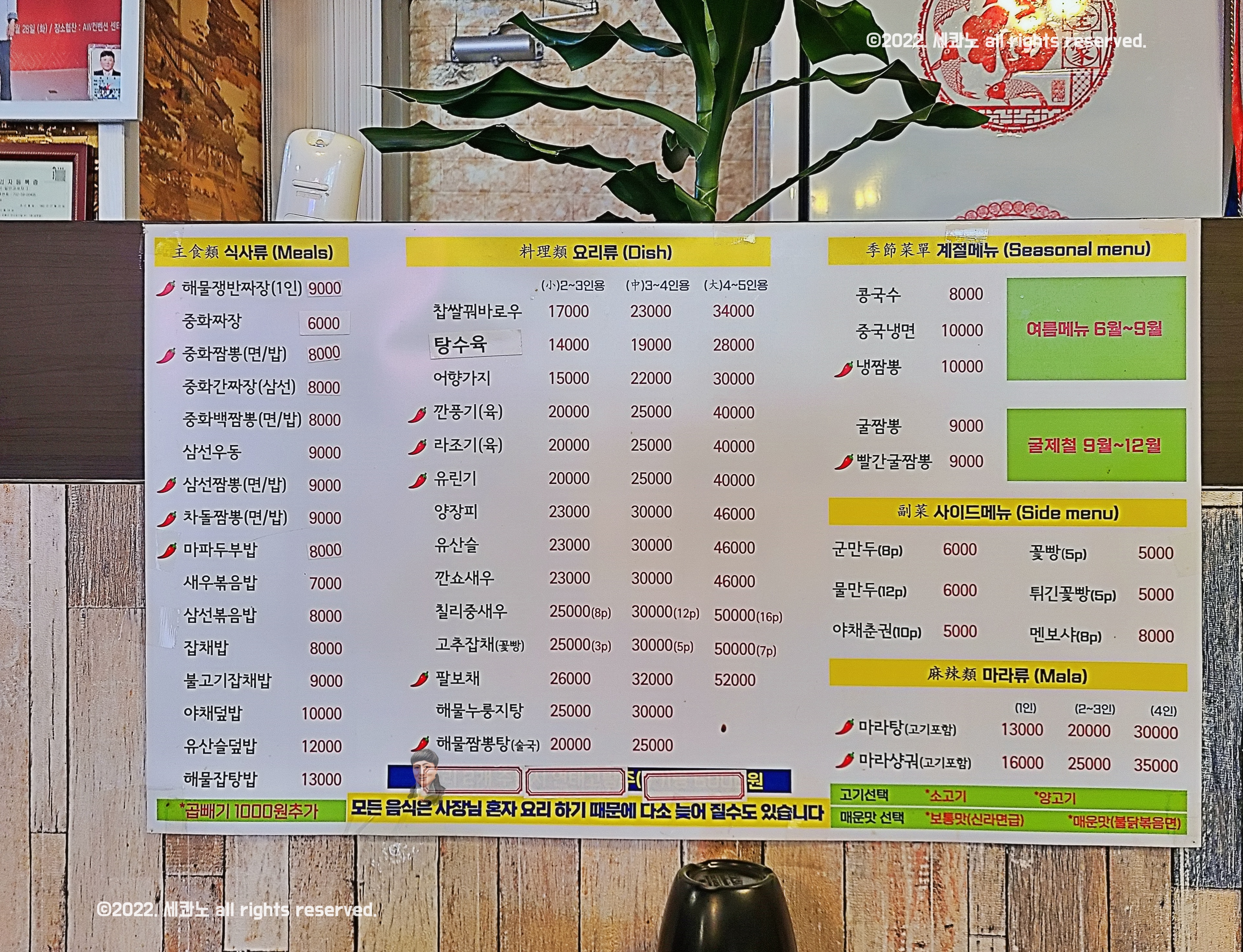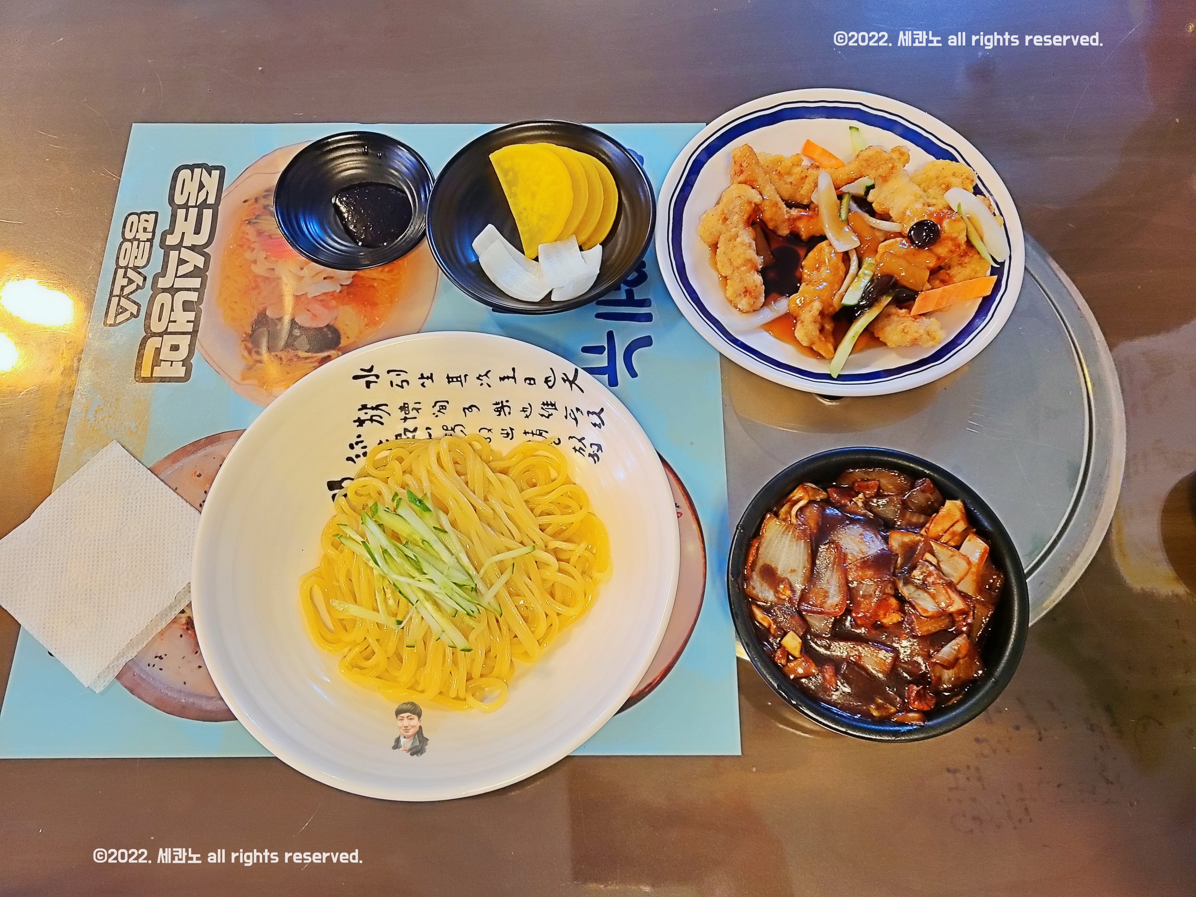 요리 두 가지와 식사(짜장or짬뽕) 주문이 가능하다.