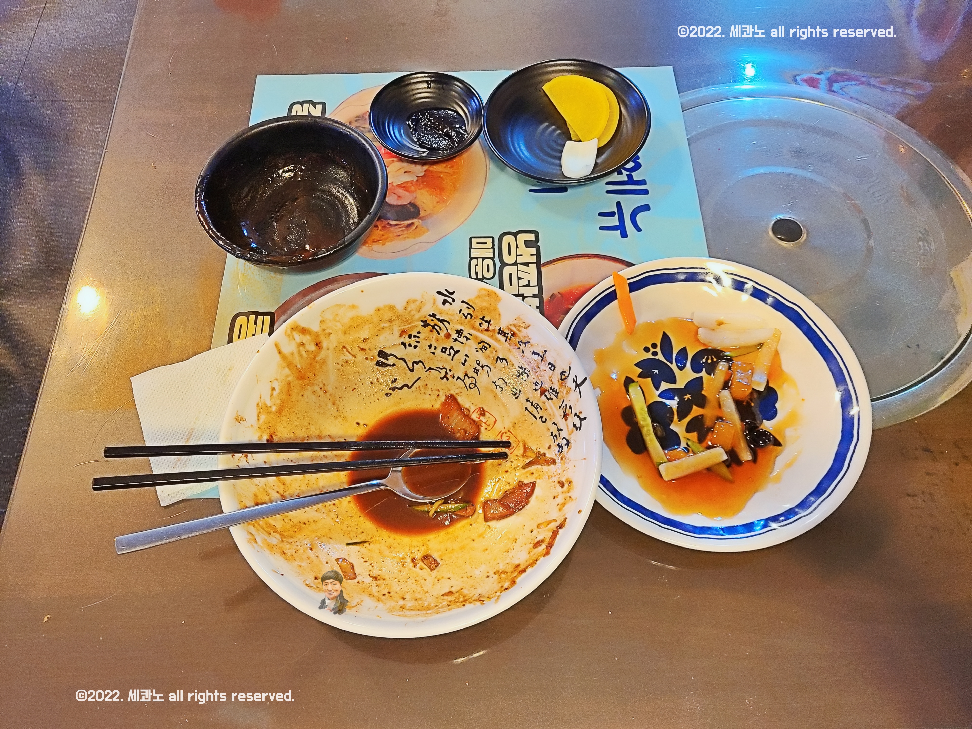 그런데 간짜장과 면의 조합이 썩 나이스하지 않았다.