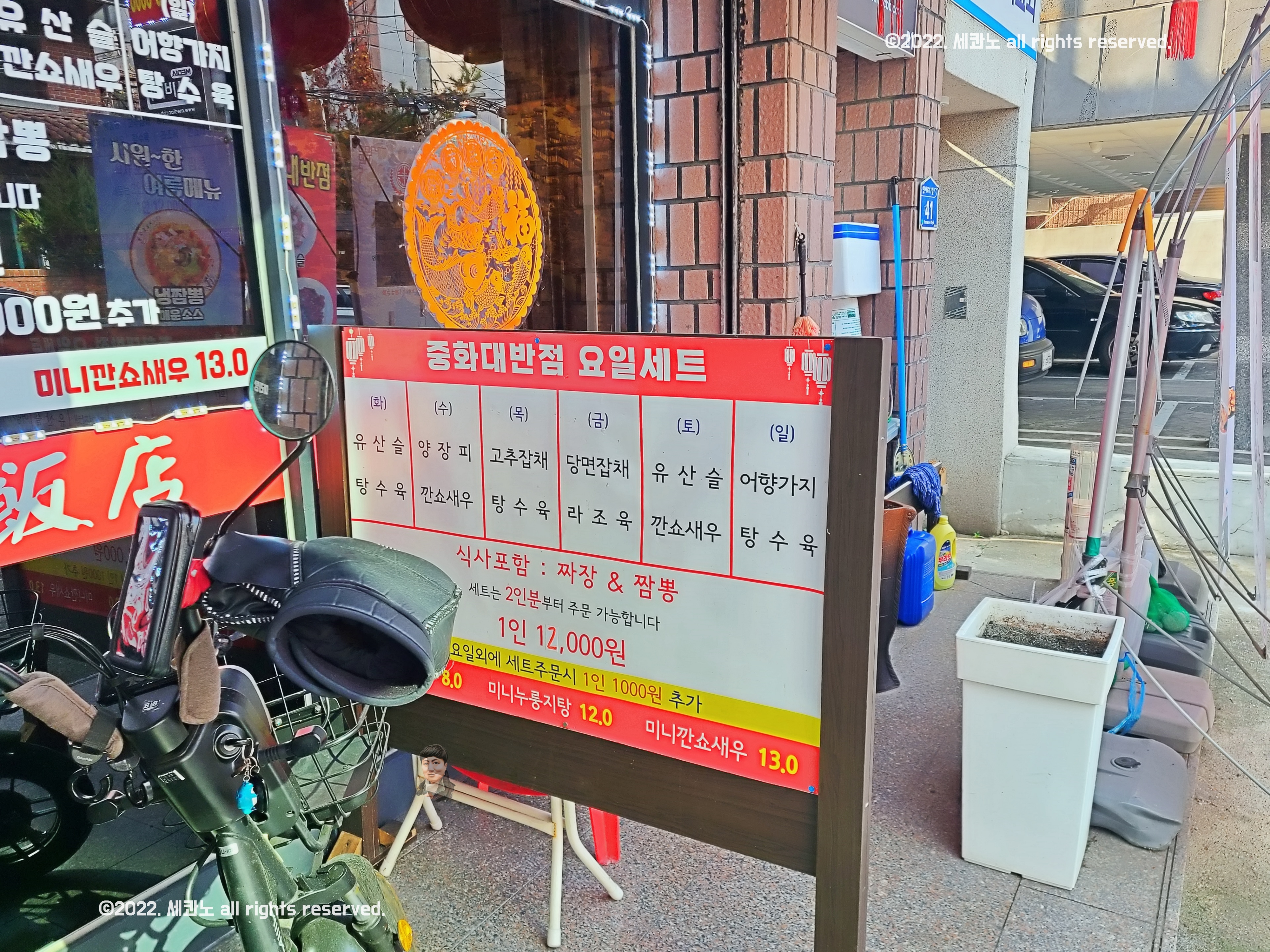 입구 우측으로 세트 메뉴? 요일 세트가 적혀 있었다.