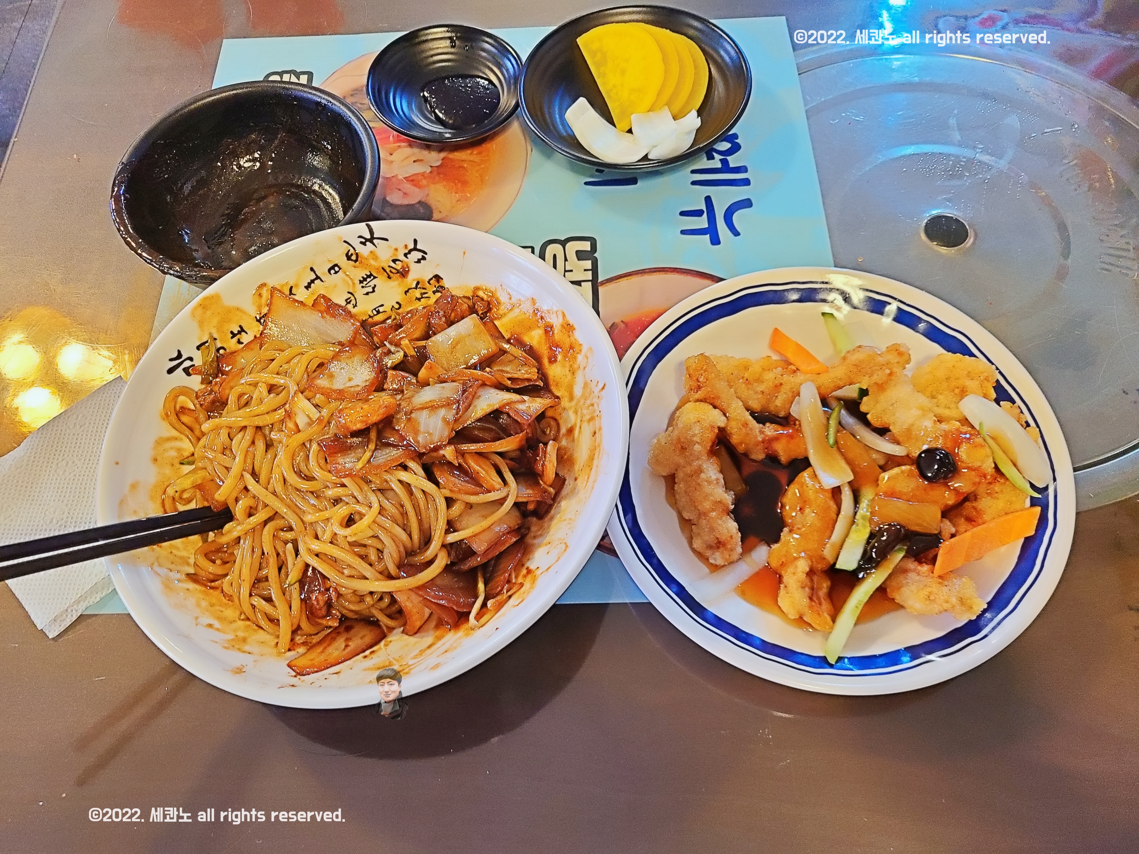 짜장면과 탕수육을 같이 먹어주는 사진 ㅋ