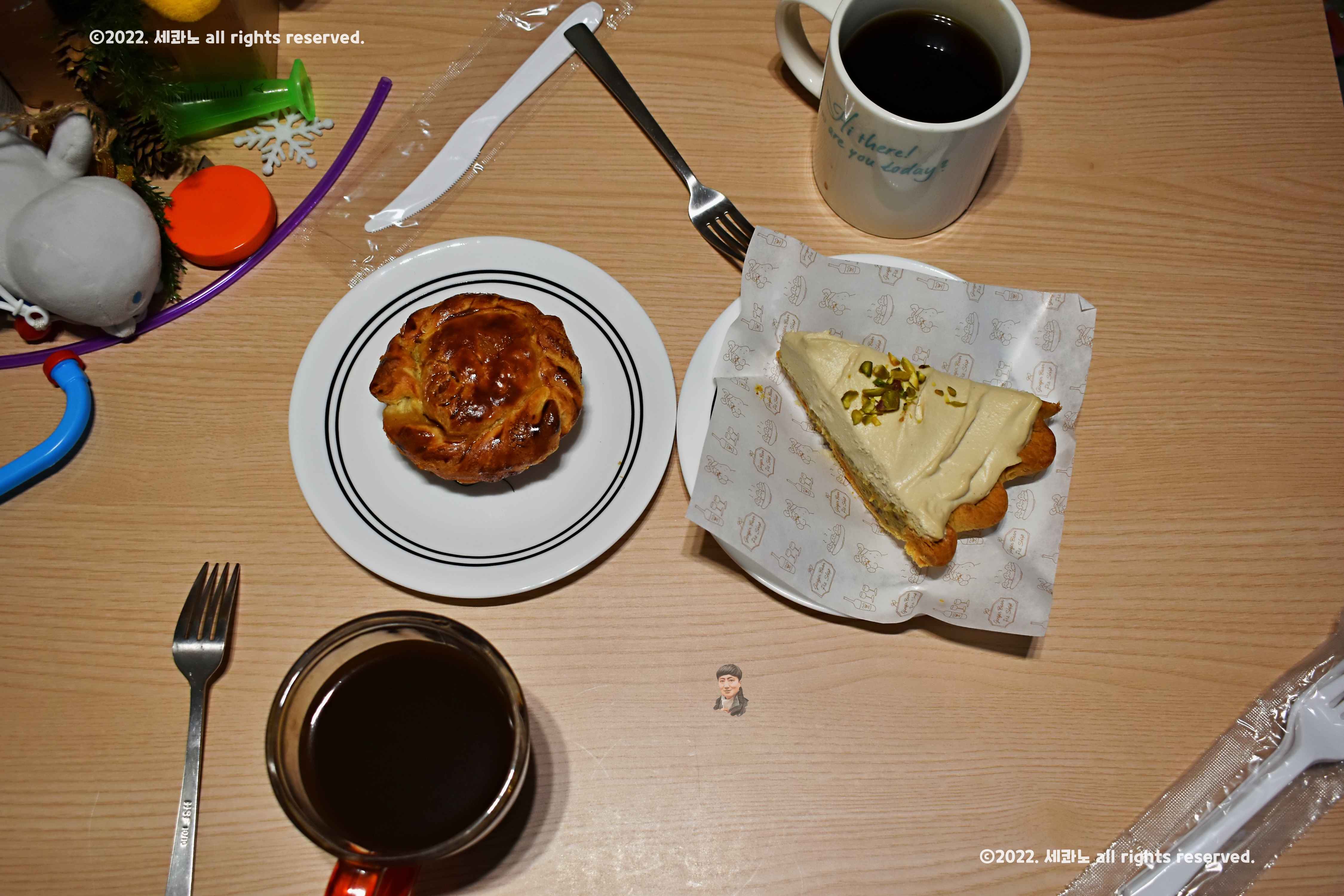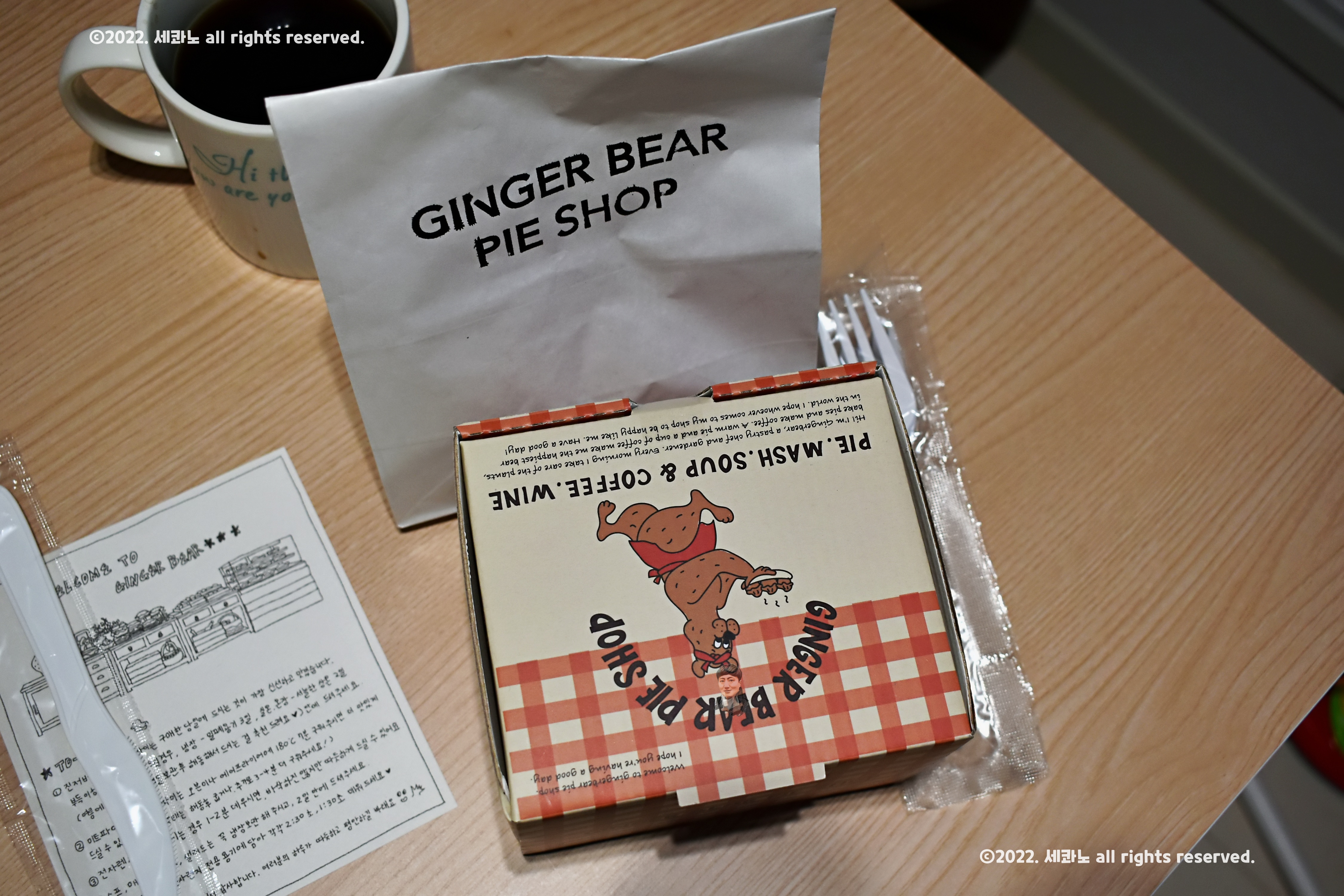 커피도 준비해두고, 다 구워진 미트파이 꺼내서 찰칵!