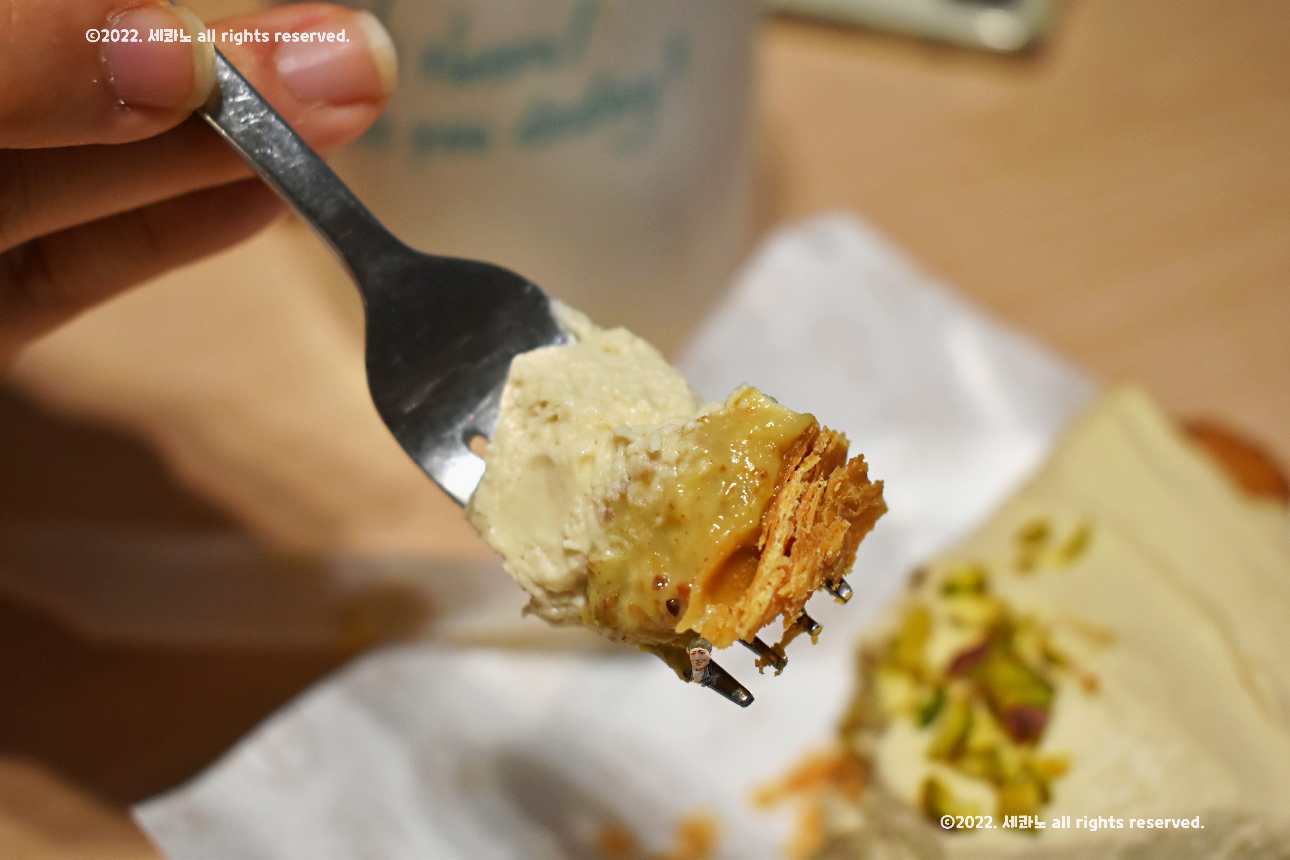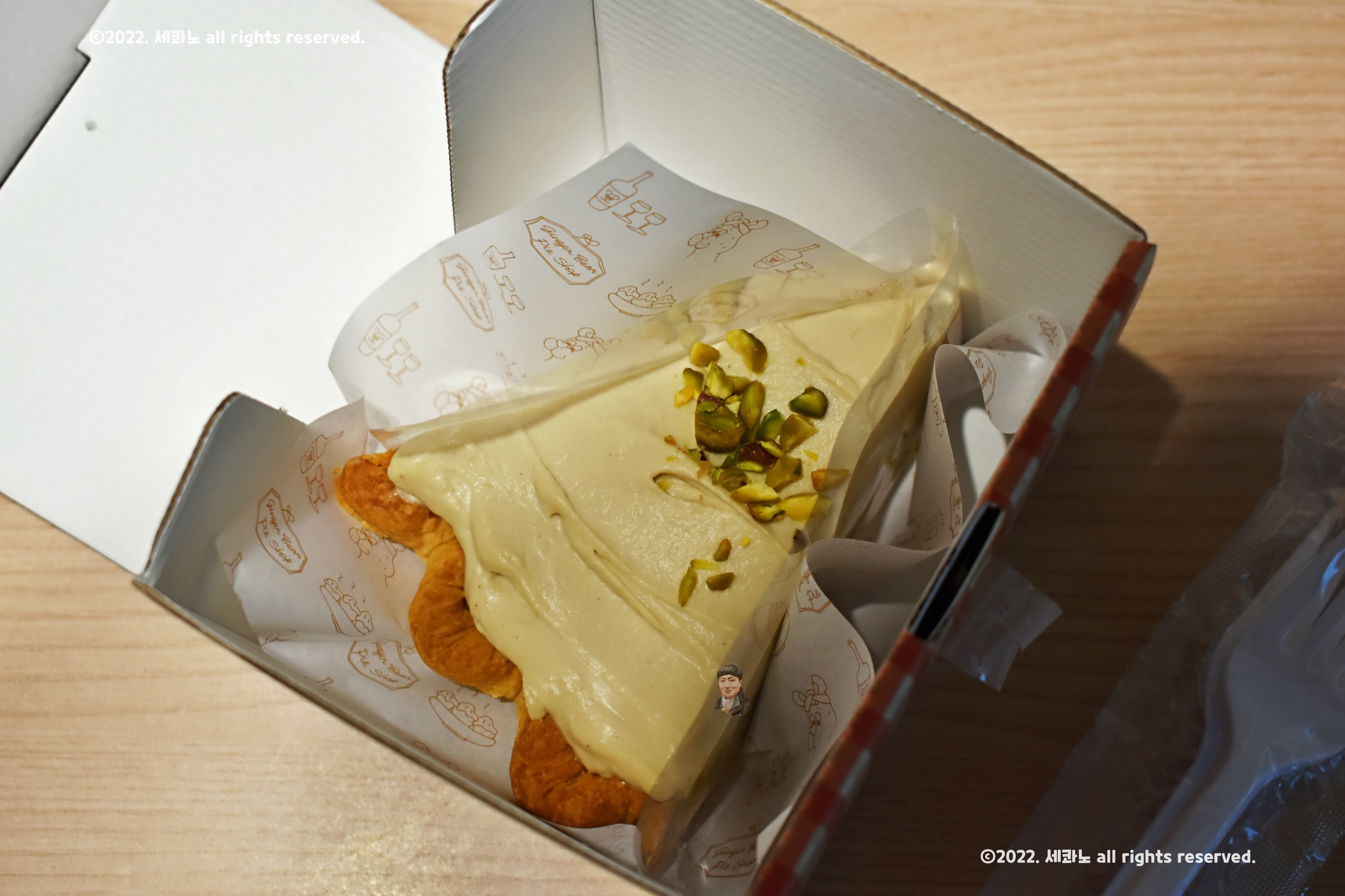 줄서는식당 피스타치오 파이 사진을 찍어보았다.