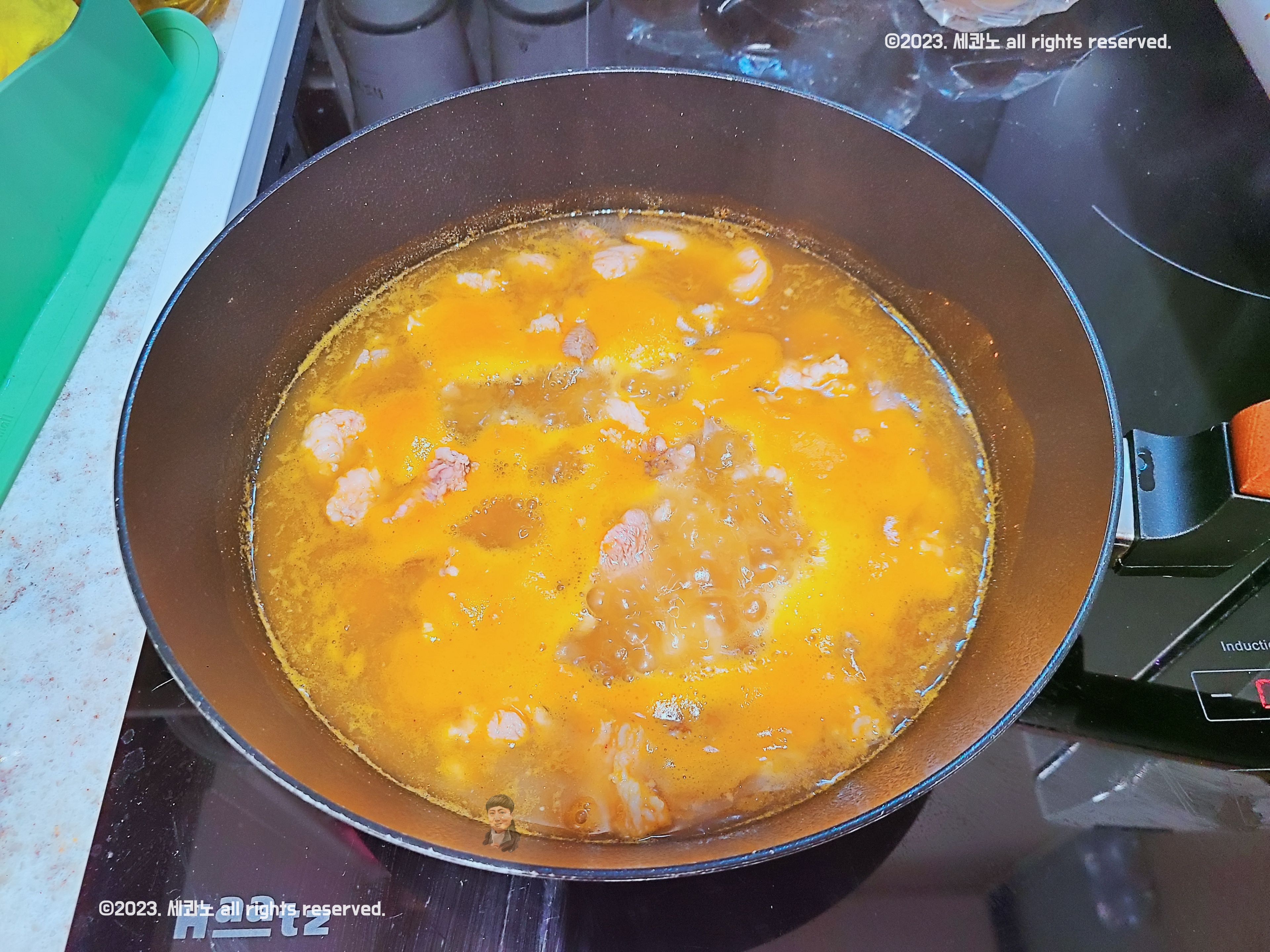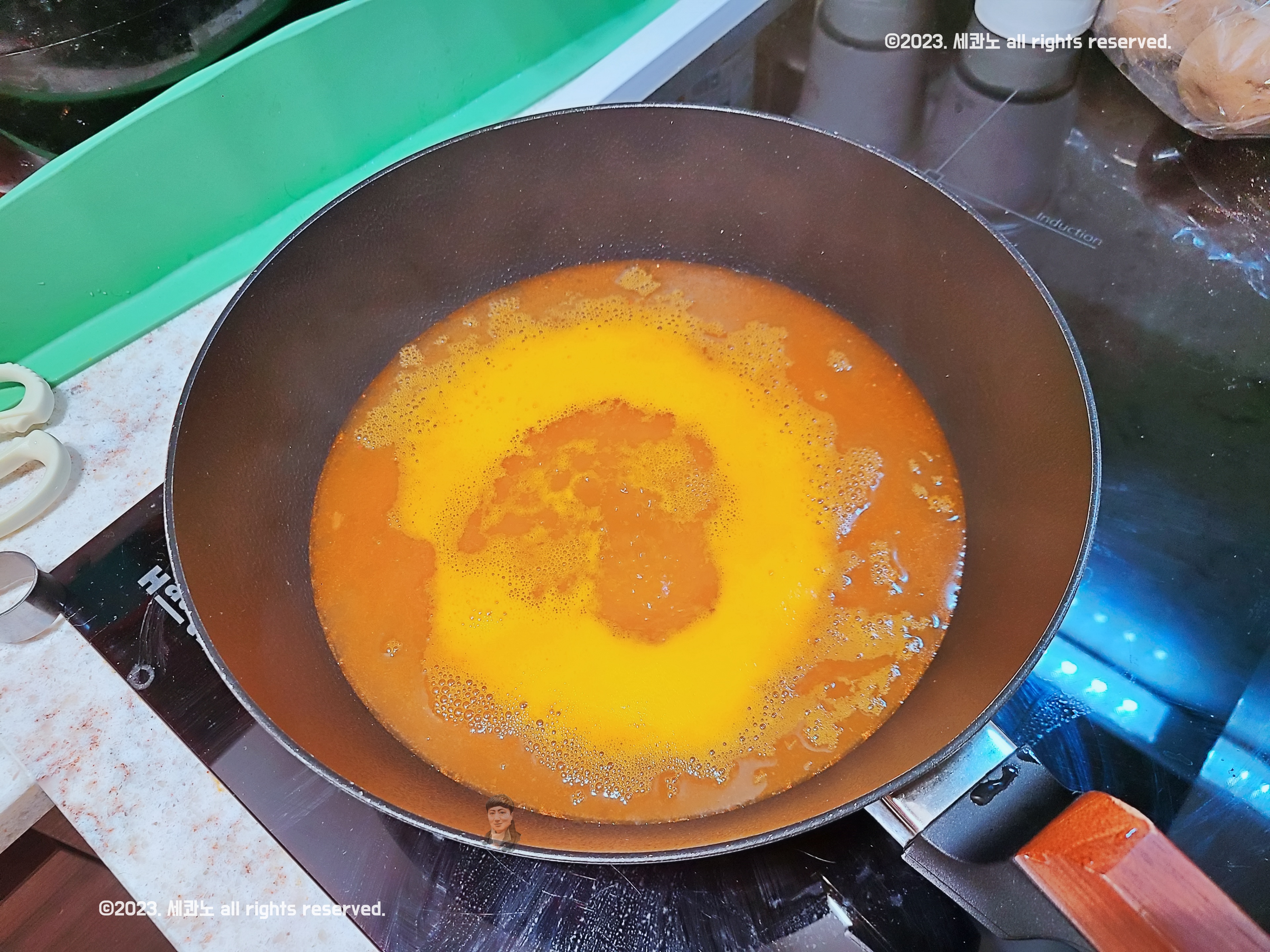 우선 육수만 따로 냄비(웍)에 덜어내었다.