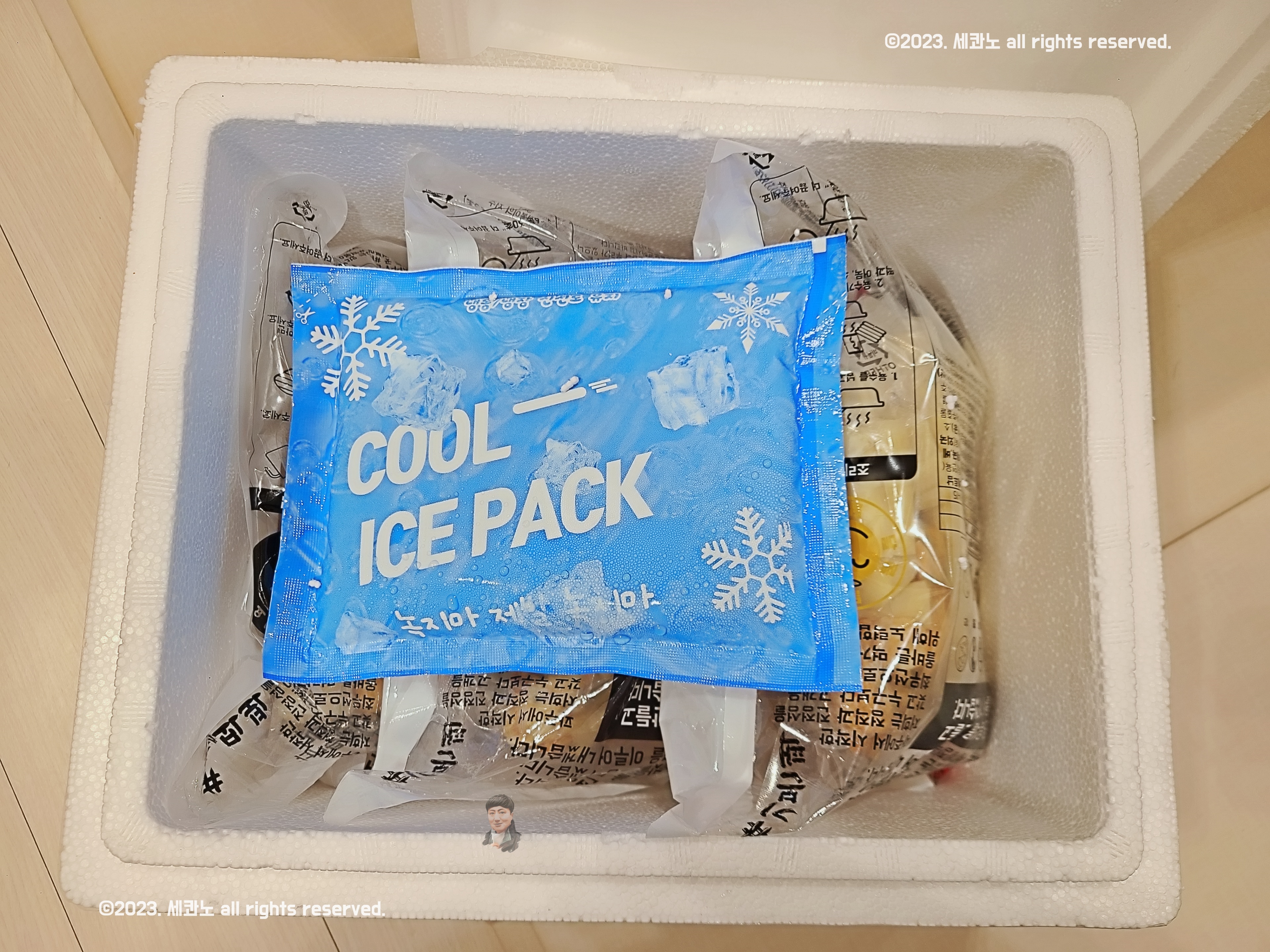 이렇게 스티로폼 박스에 아이스 백과 함께 배송되어 온다.