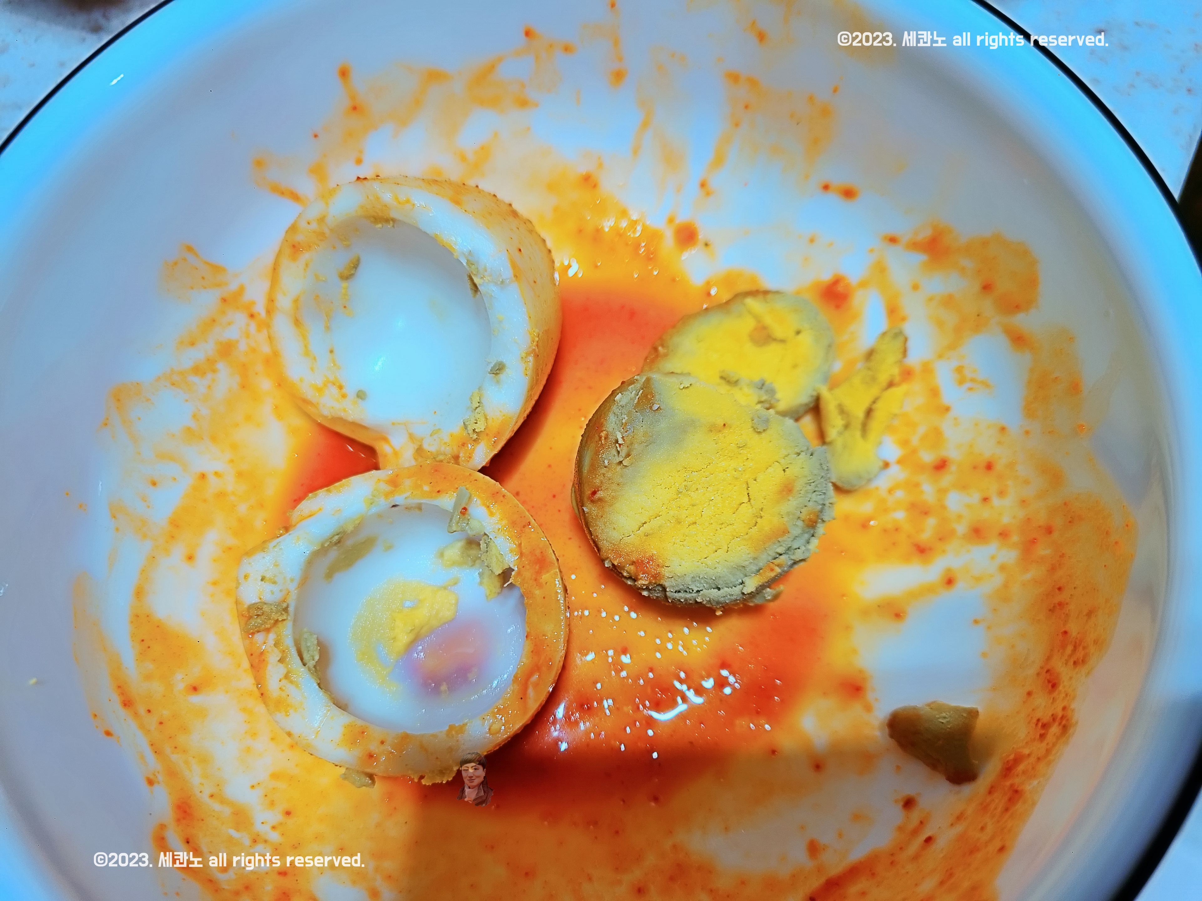 그 노른자만 꺼내 소스에 비비고