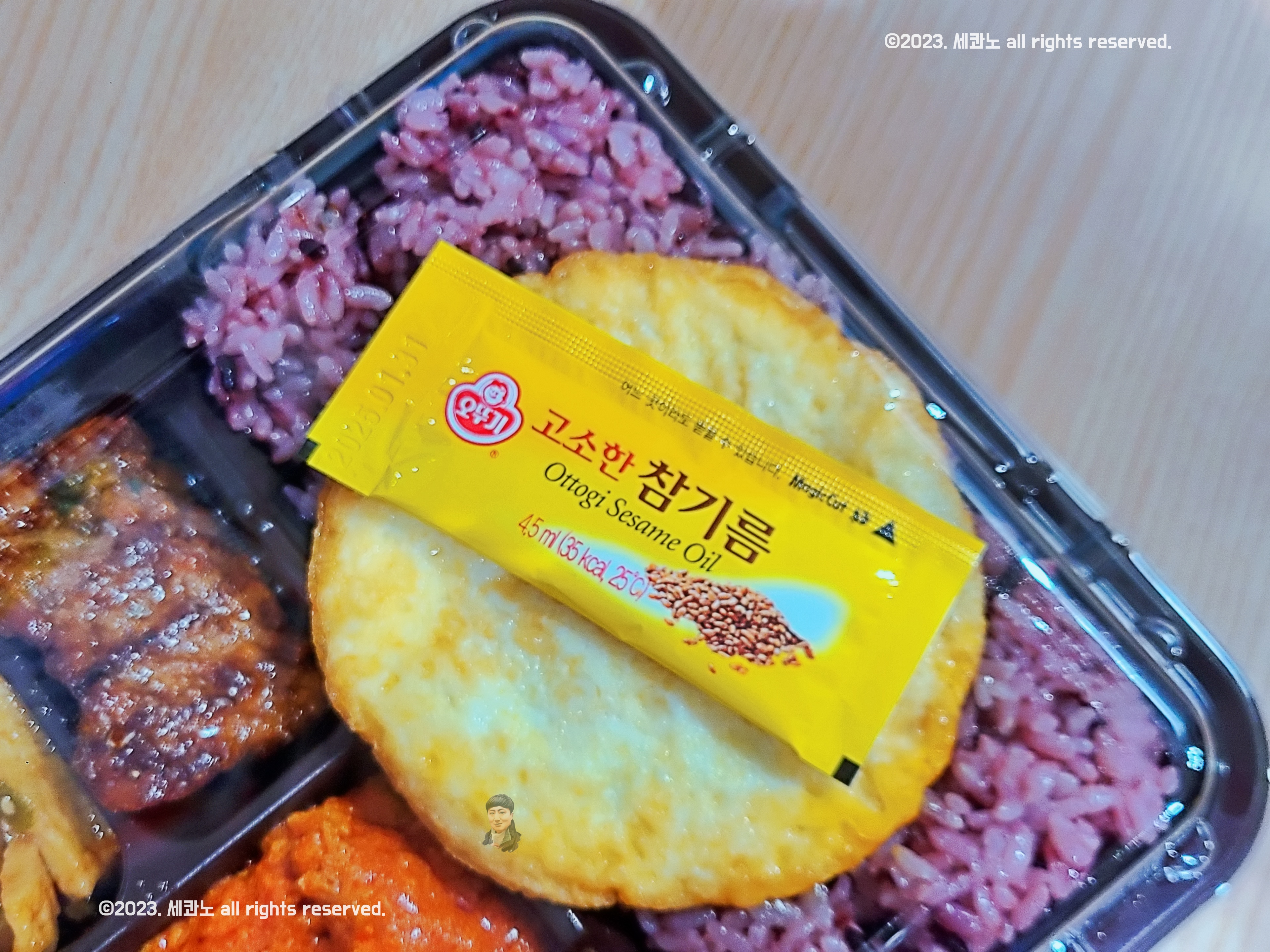 "동봉된 참기름을 취향에 맞춰 제육볶음에 뿌려 드세요!"