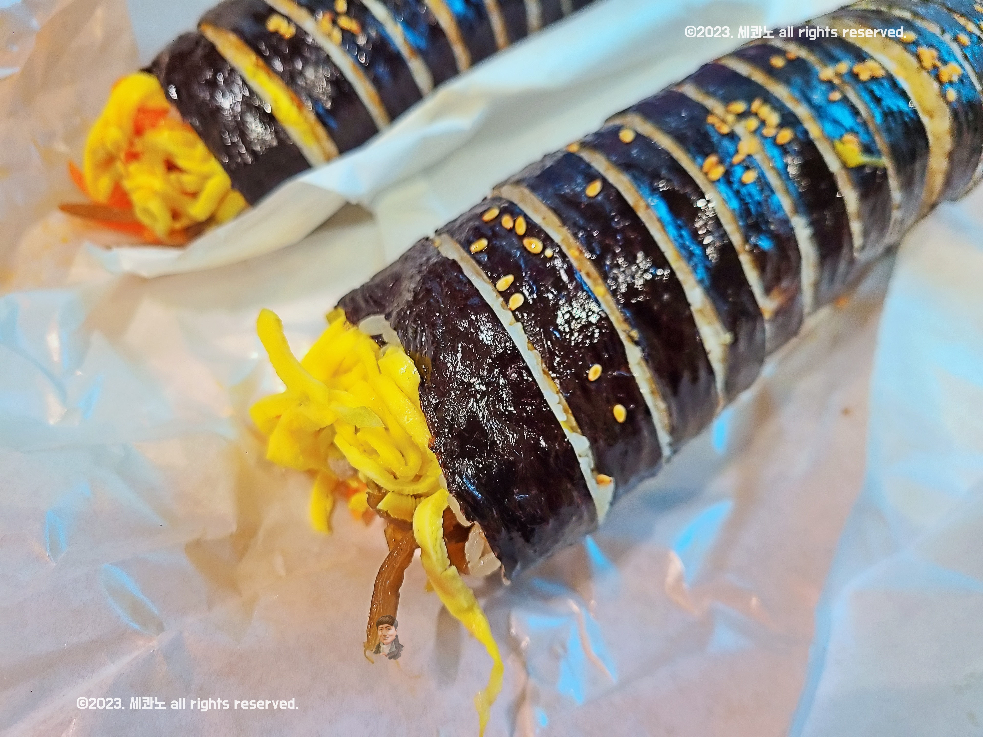 역시 김밥은 이렇게 눕혀놓고 찍는 게 가장 나은듯싶다.