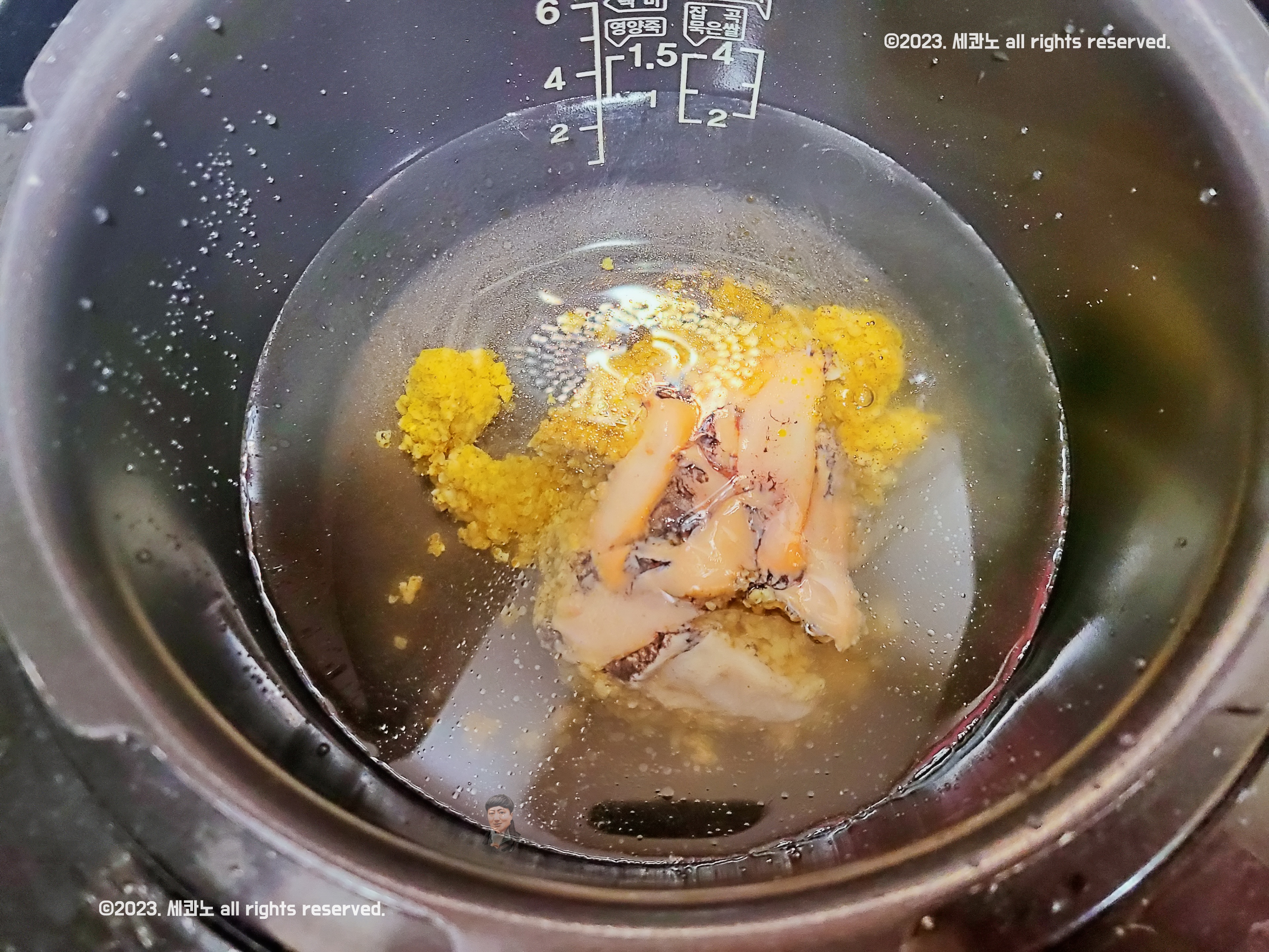 특히 찰지고 진한 맛을 위해 압력솥째 끓인