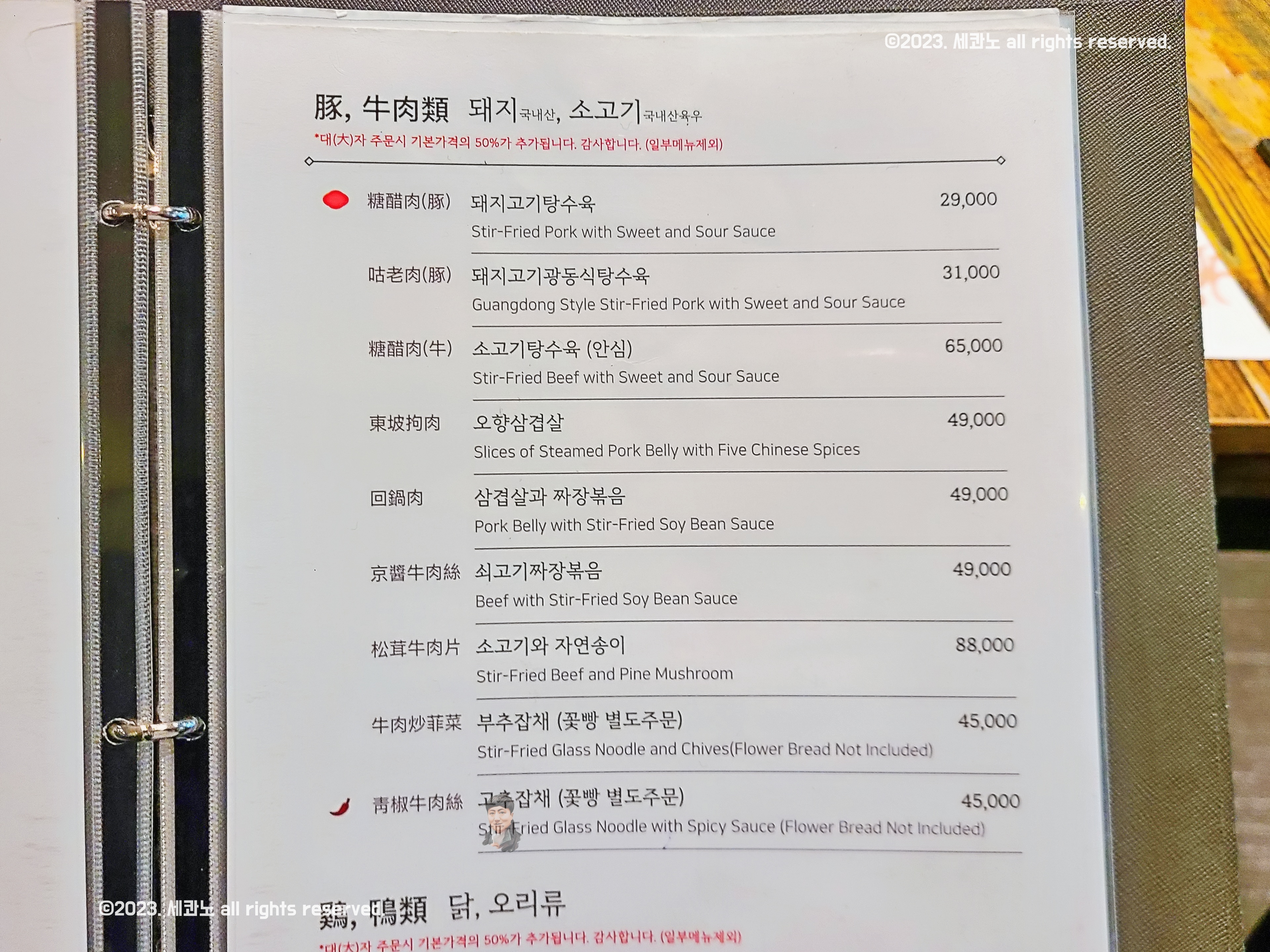 실제 탕수육 메뉴를 보아하니