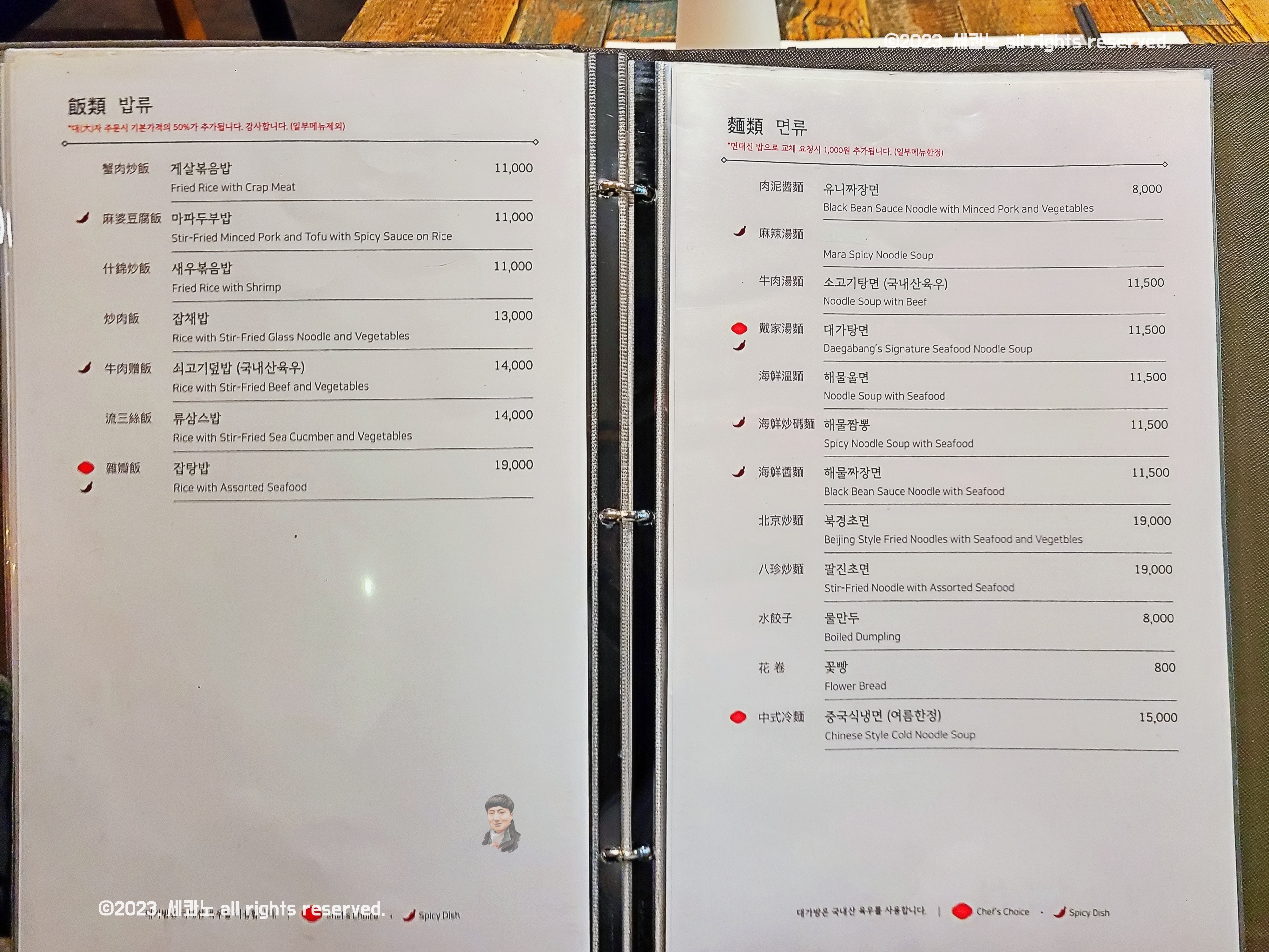 잡탕밥, 대가탕면, 중국식냉면(여름한정)이더라.