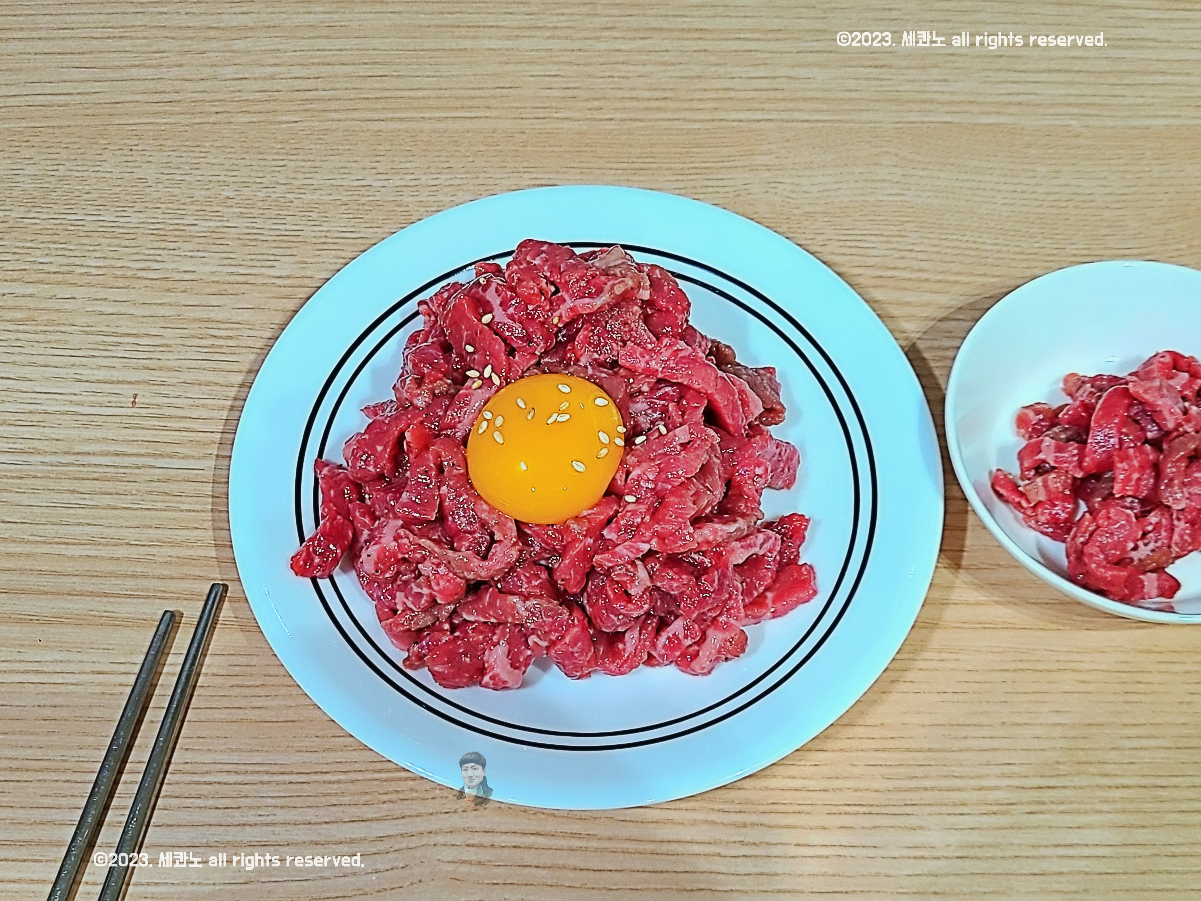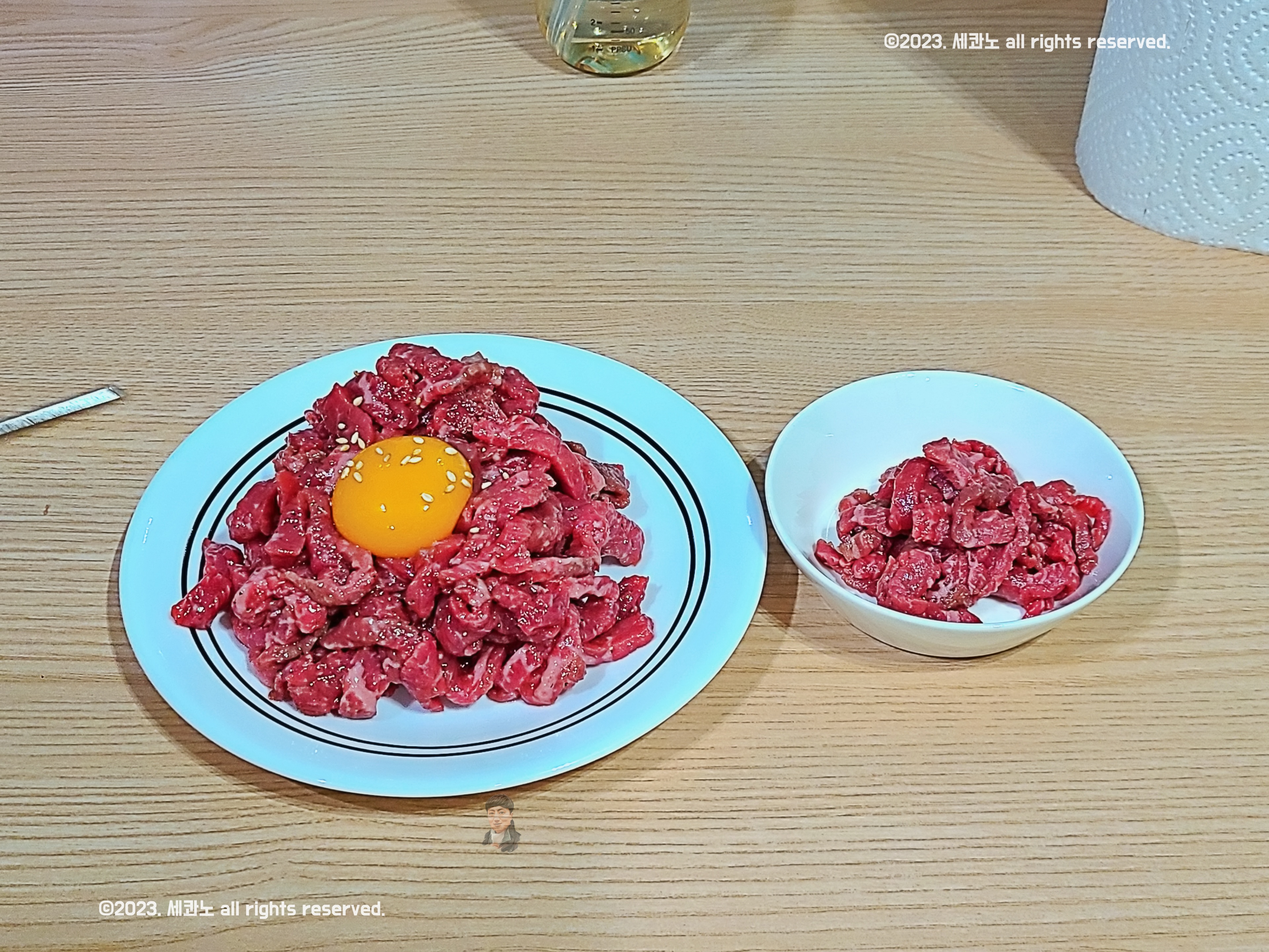 집 근처에서 사 먹는 육회보다 투플러스 한우 퀄리티도 더 좋으면서