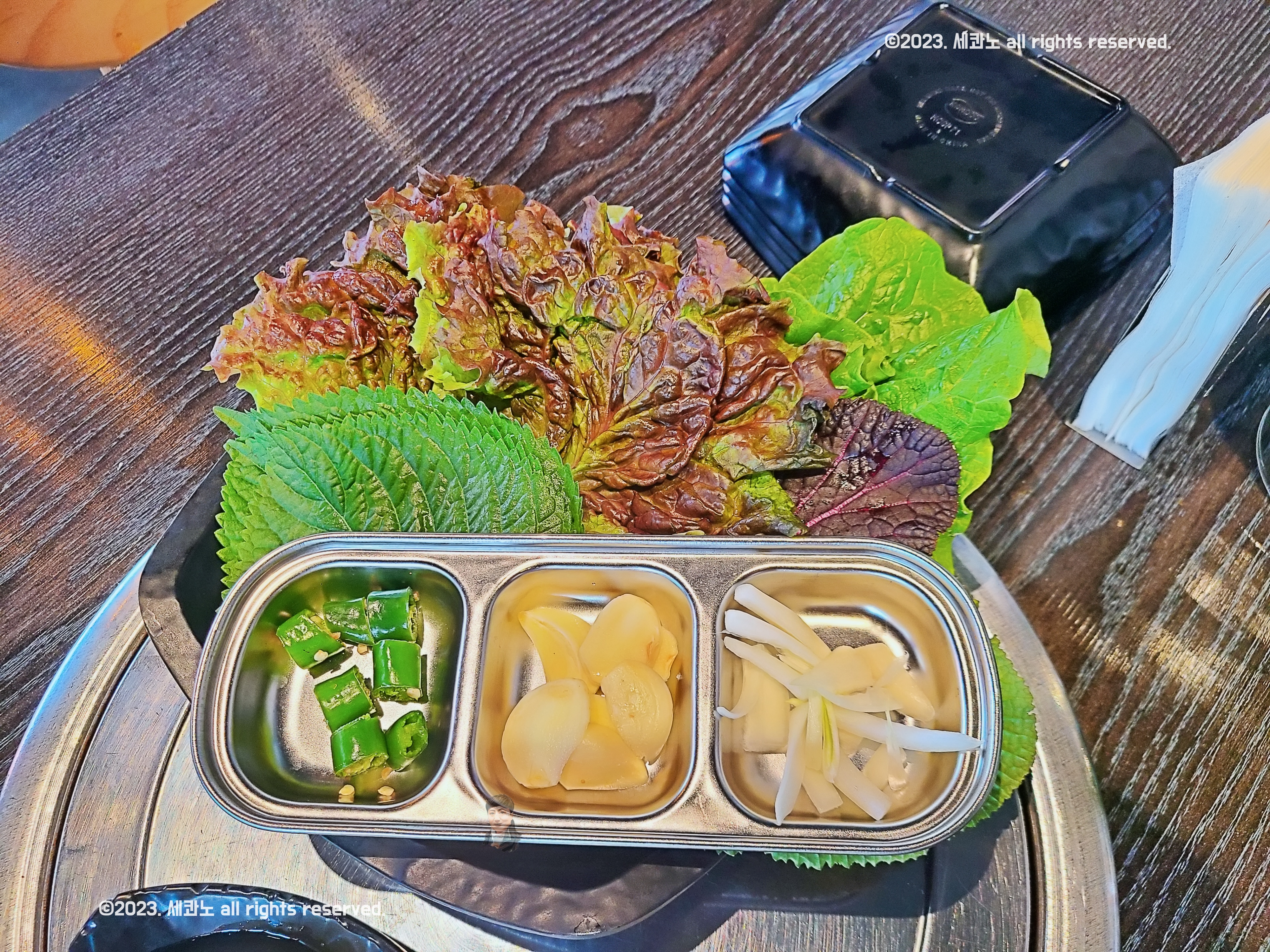 우삼겹 구이를 쌈채소와 함께 맛본다고.