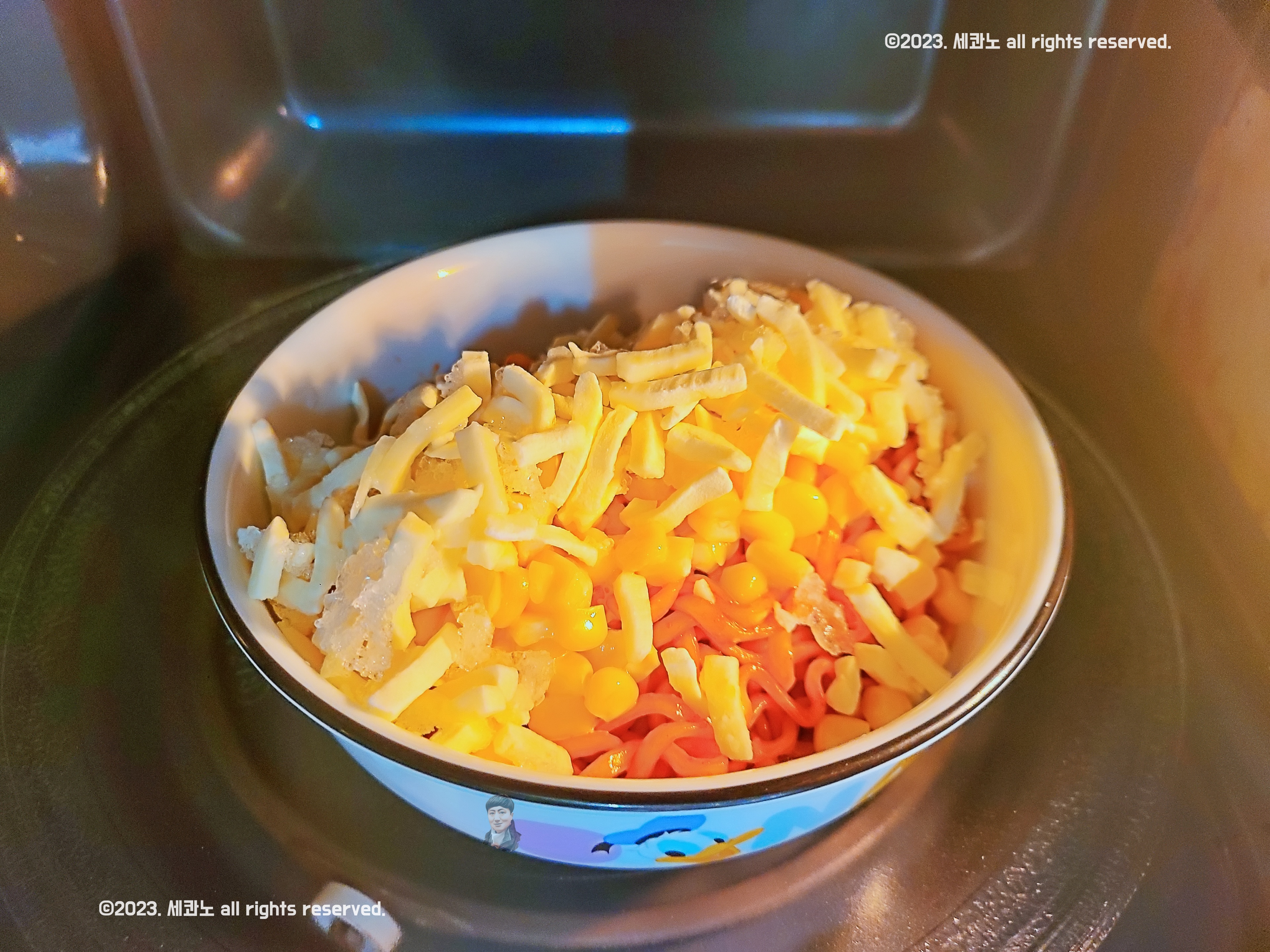 불닭볶음면 위에 콘소스 올리고, 모짜렐라 치즈 뿌리고