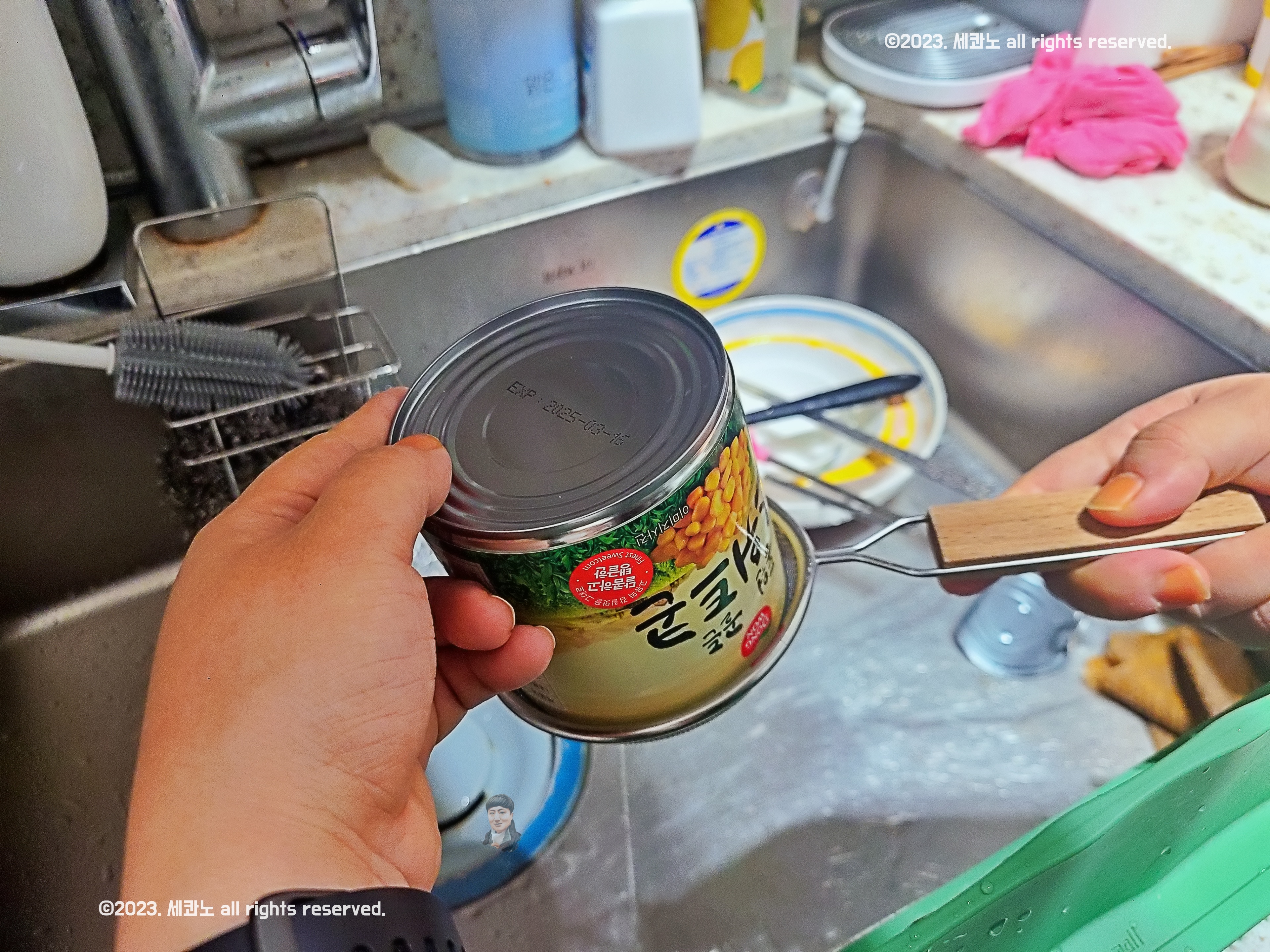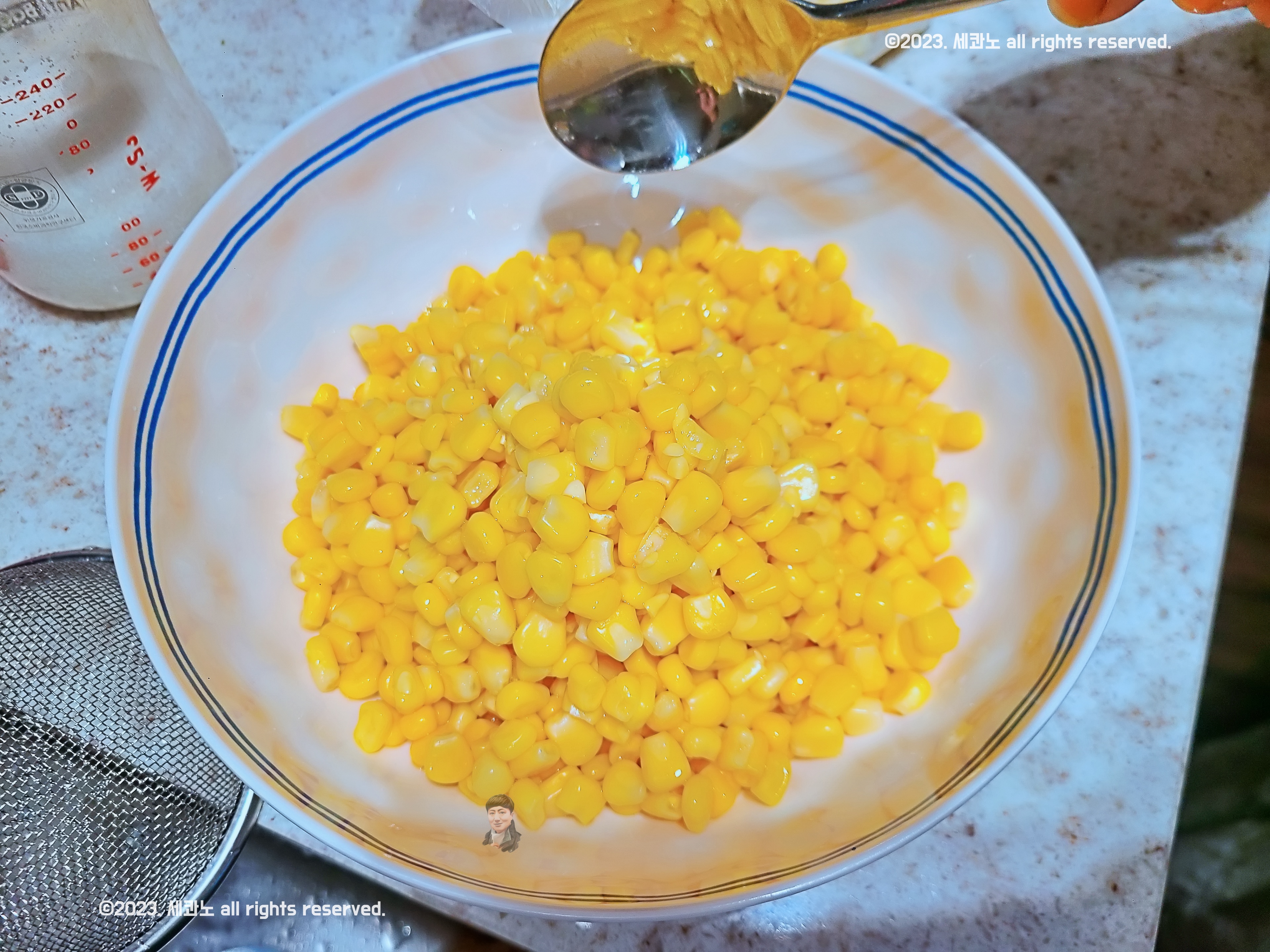 우선 통조림 콘의 물기를 빼야 한다.