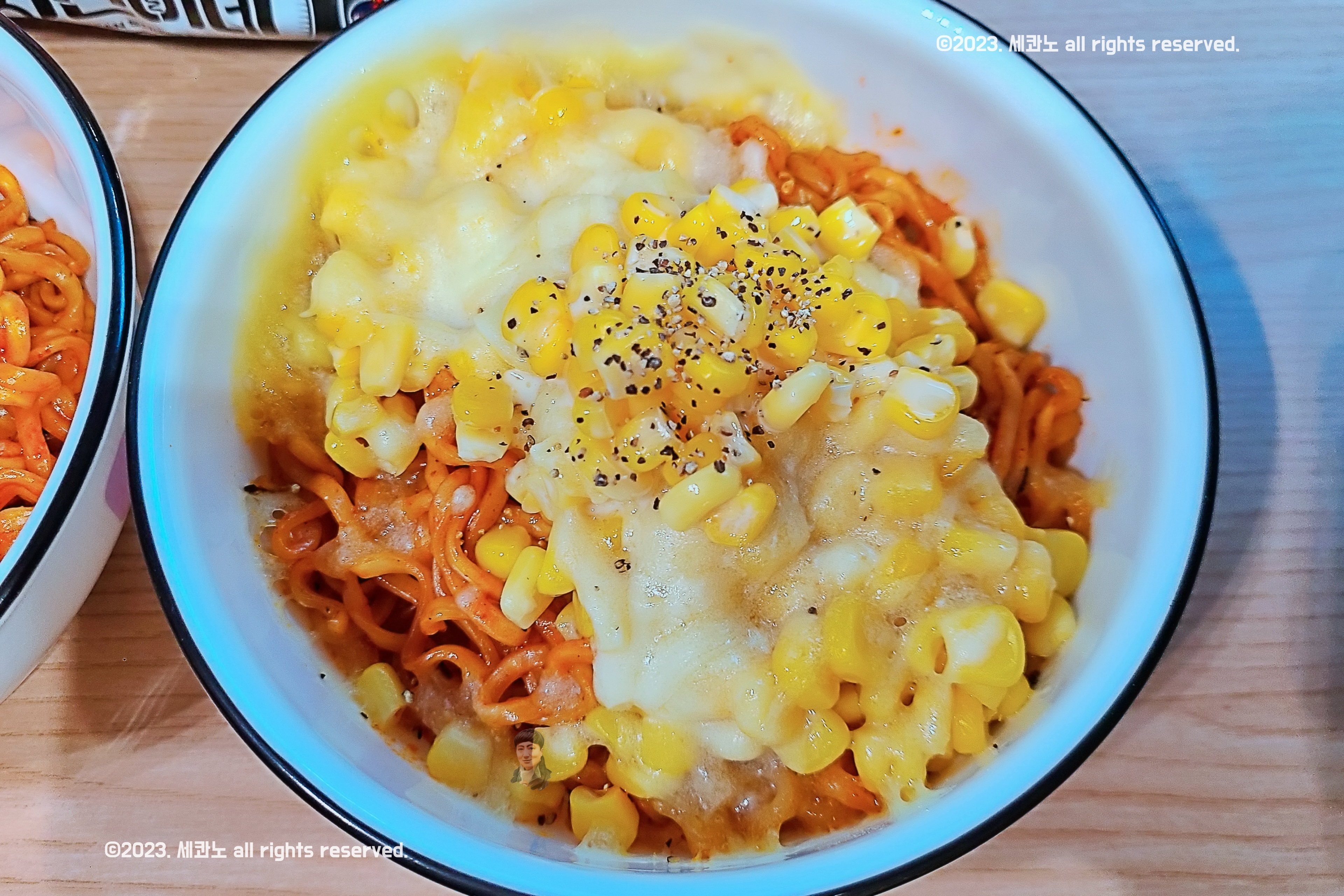 불닭볶음면 위에 콘소스 올리고, 모짜렐라 치즈 뿌리고