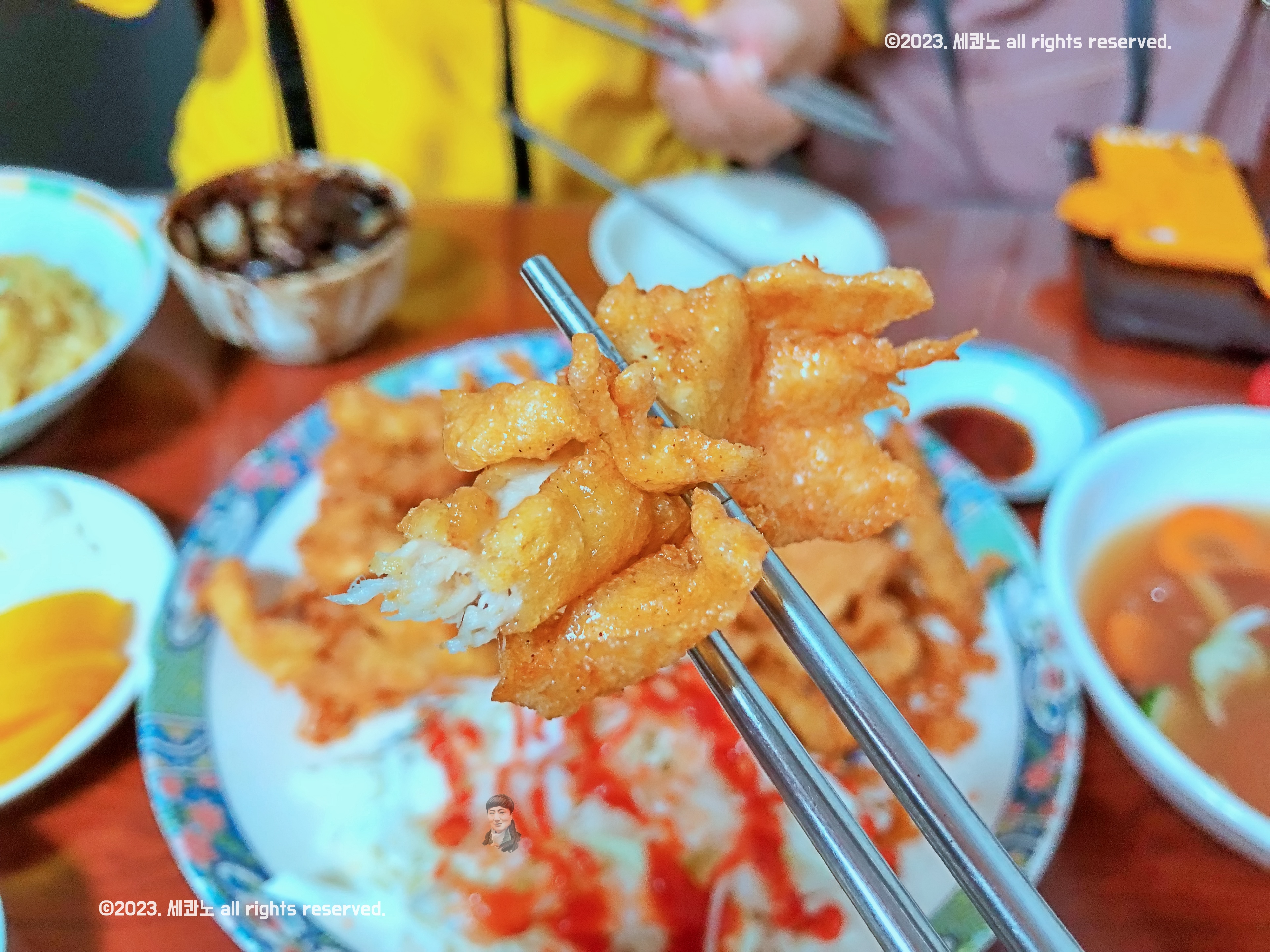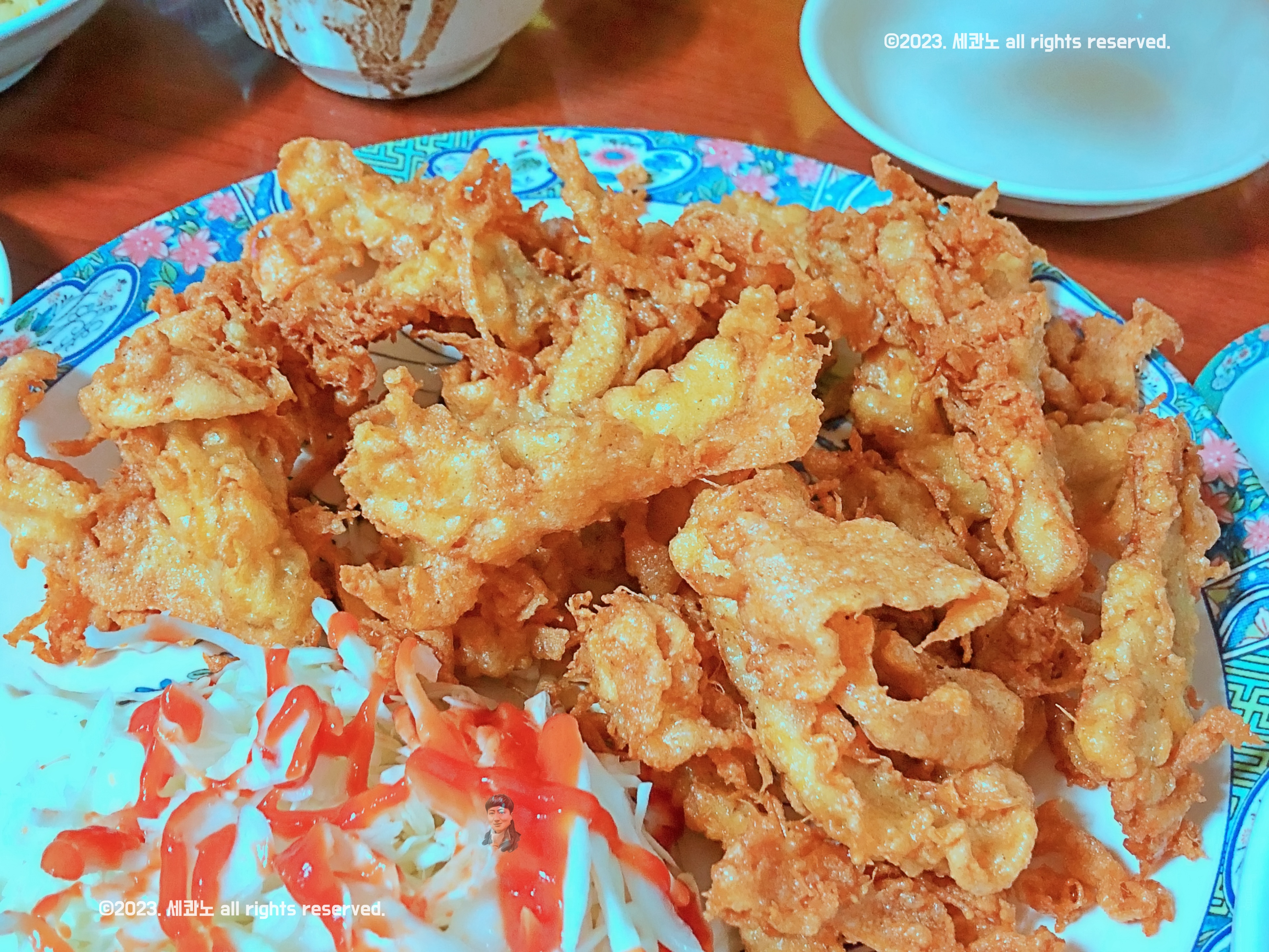 튀김옷 자체가 과자 같다는 생각이 들 정도로 바삭함