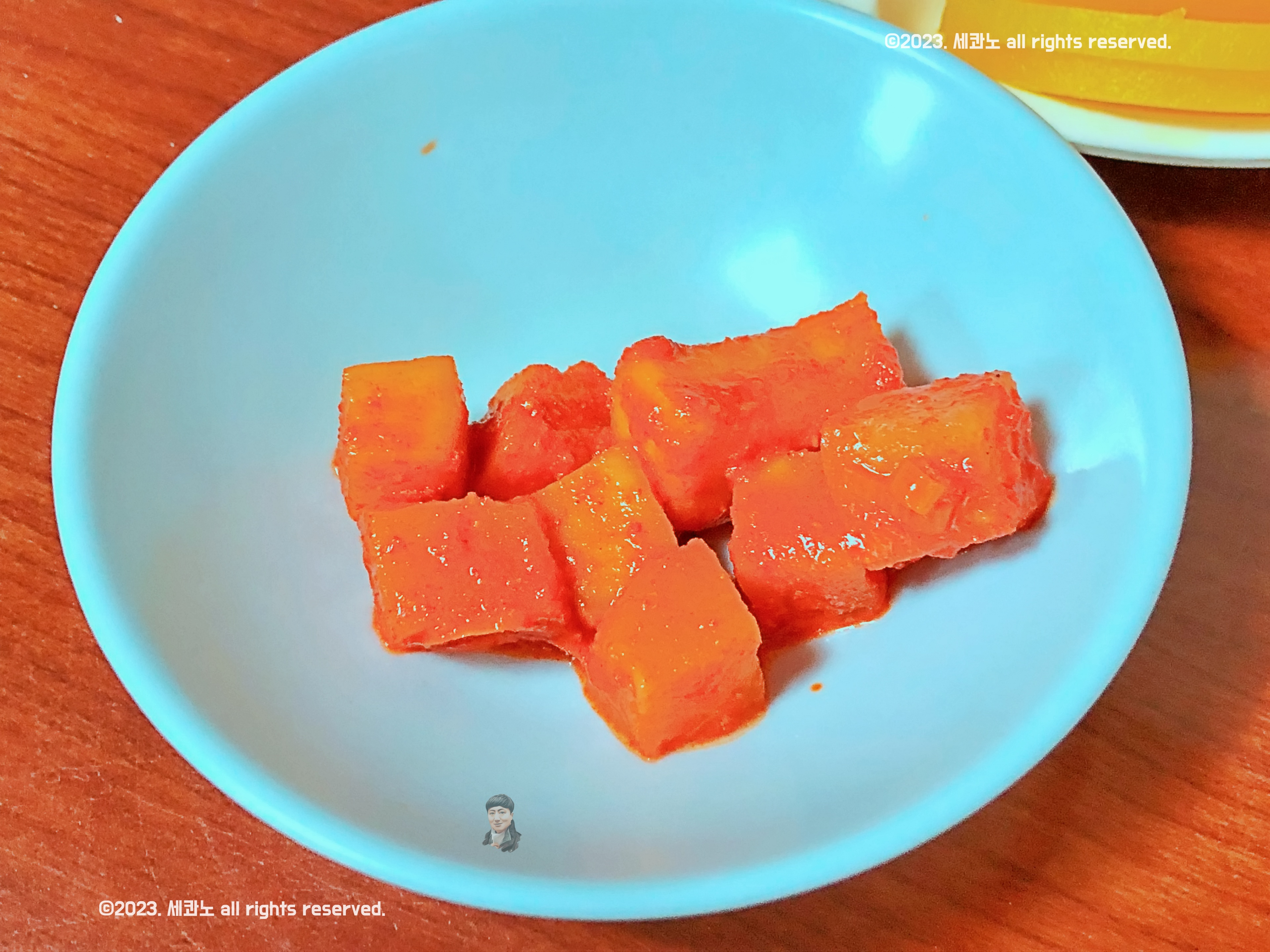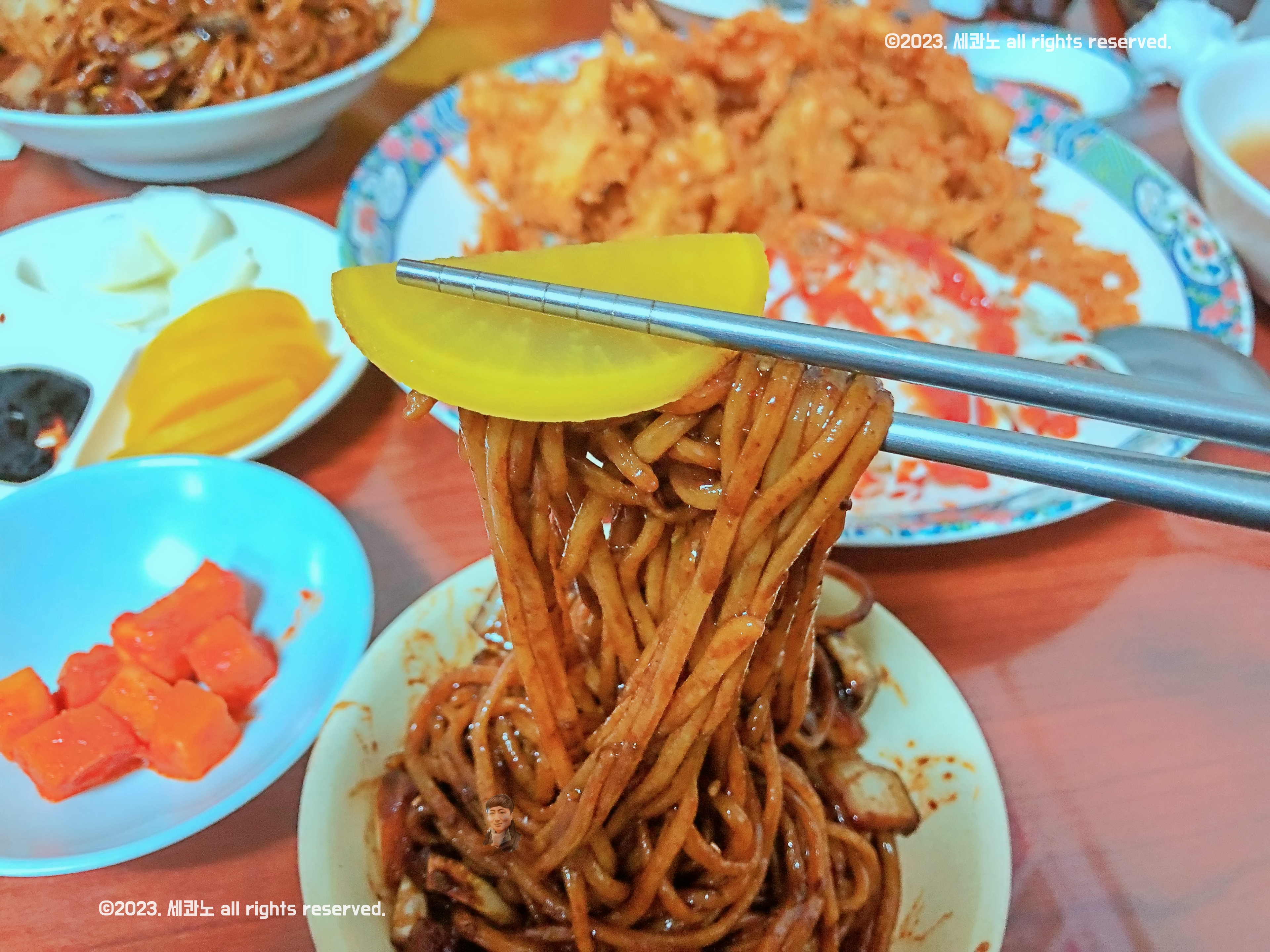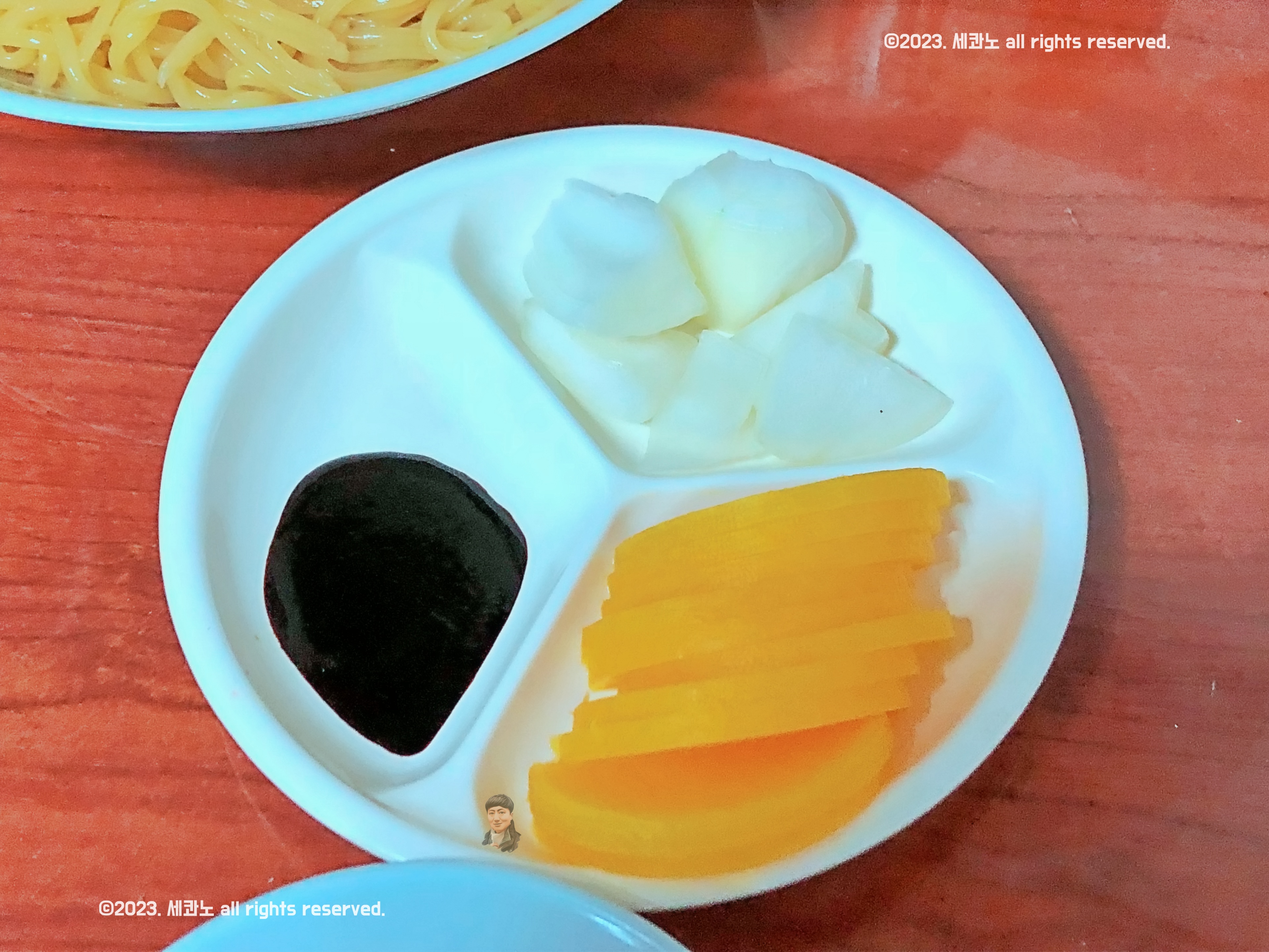 깍두기와 단무지, 양파와 춘장이 나왔었다.