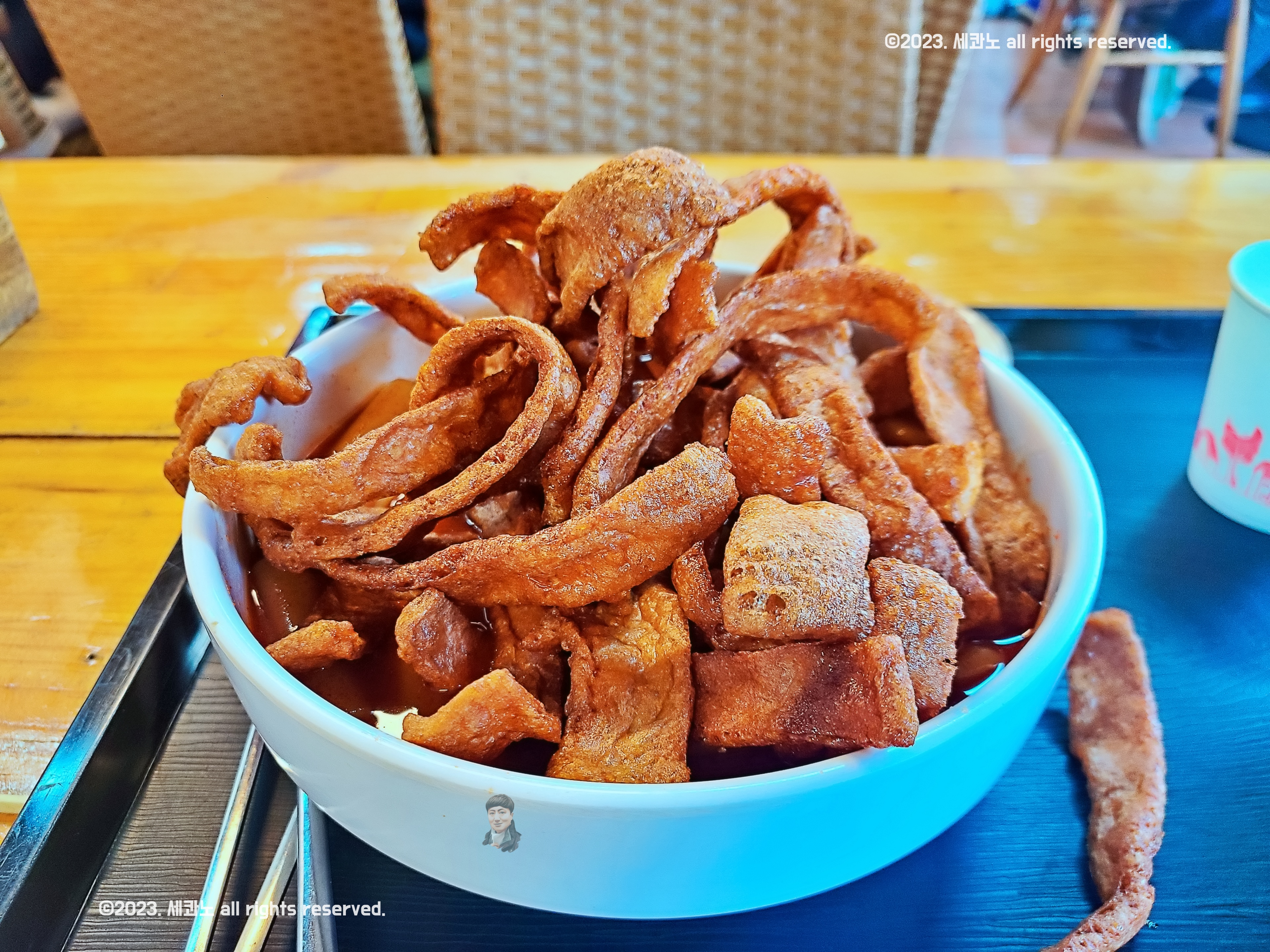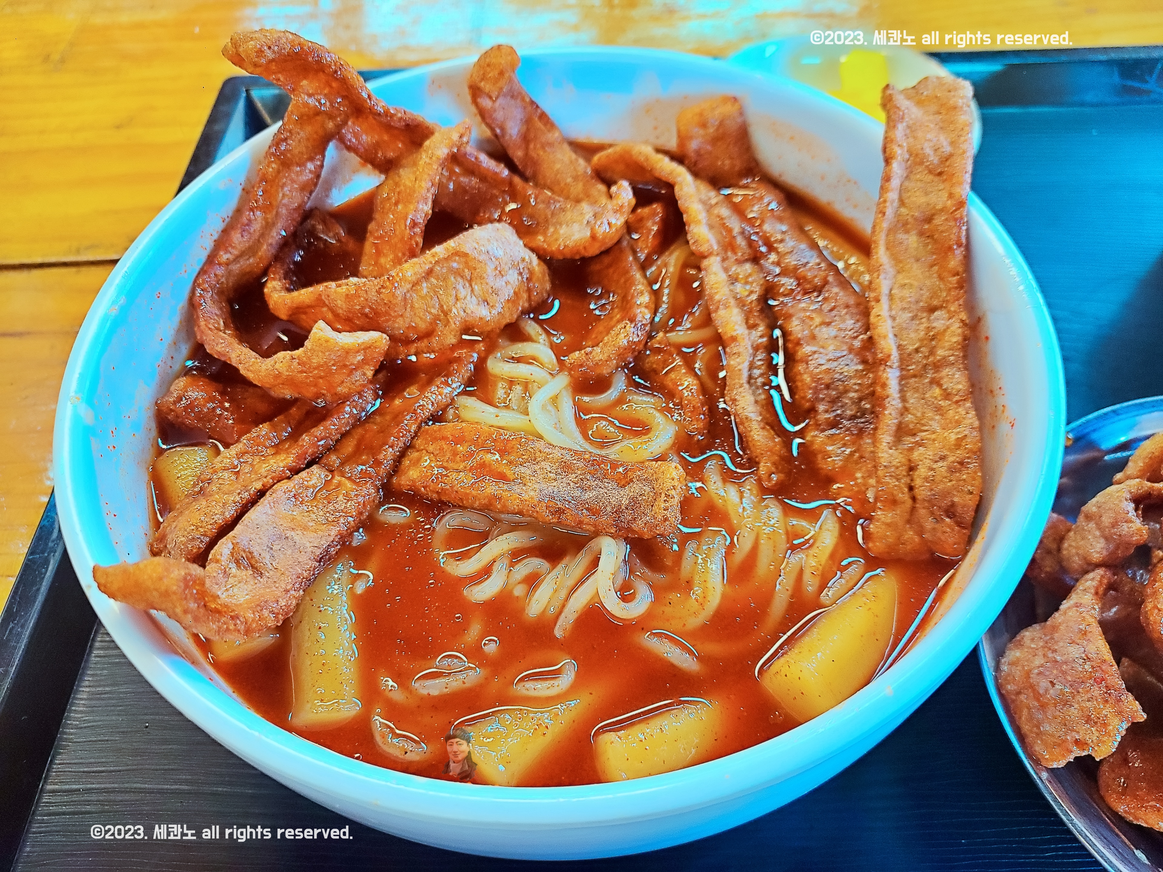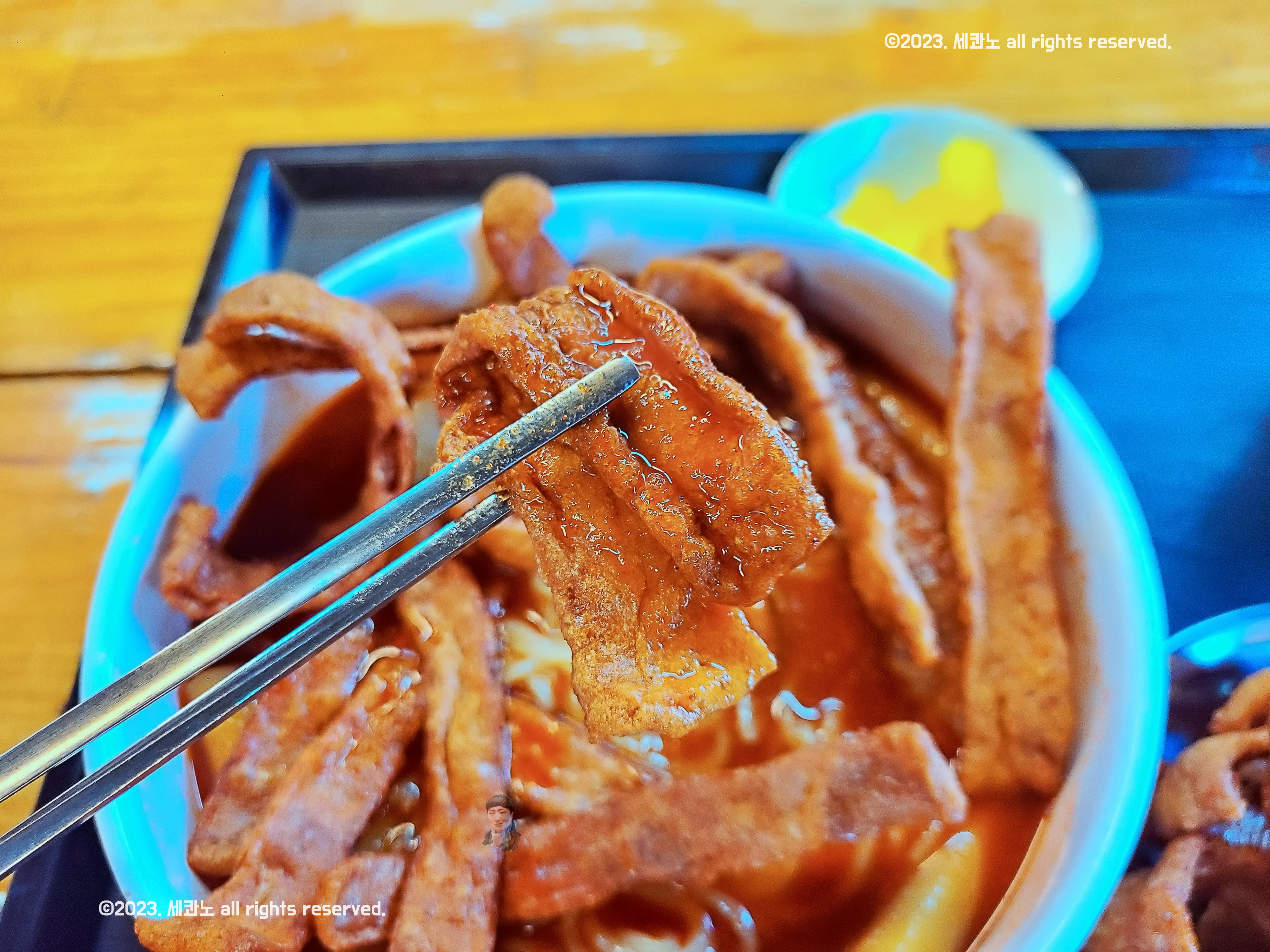 위에 올라간 오뎅튀김 토핑, 사리가 아닐까 싶고