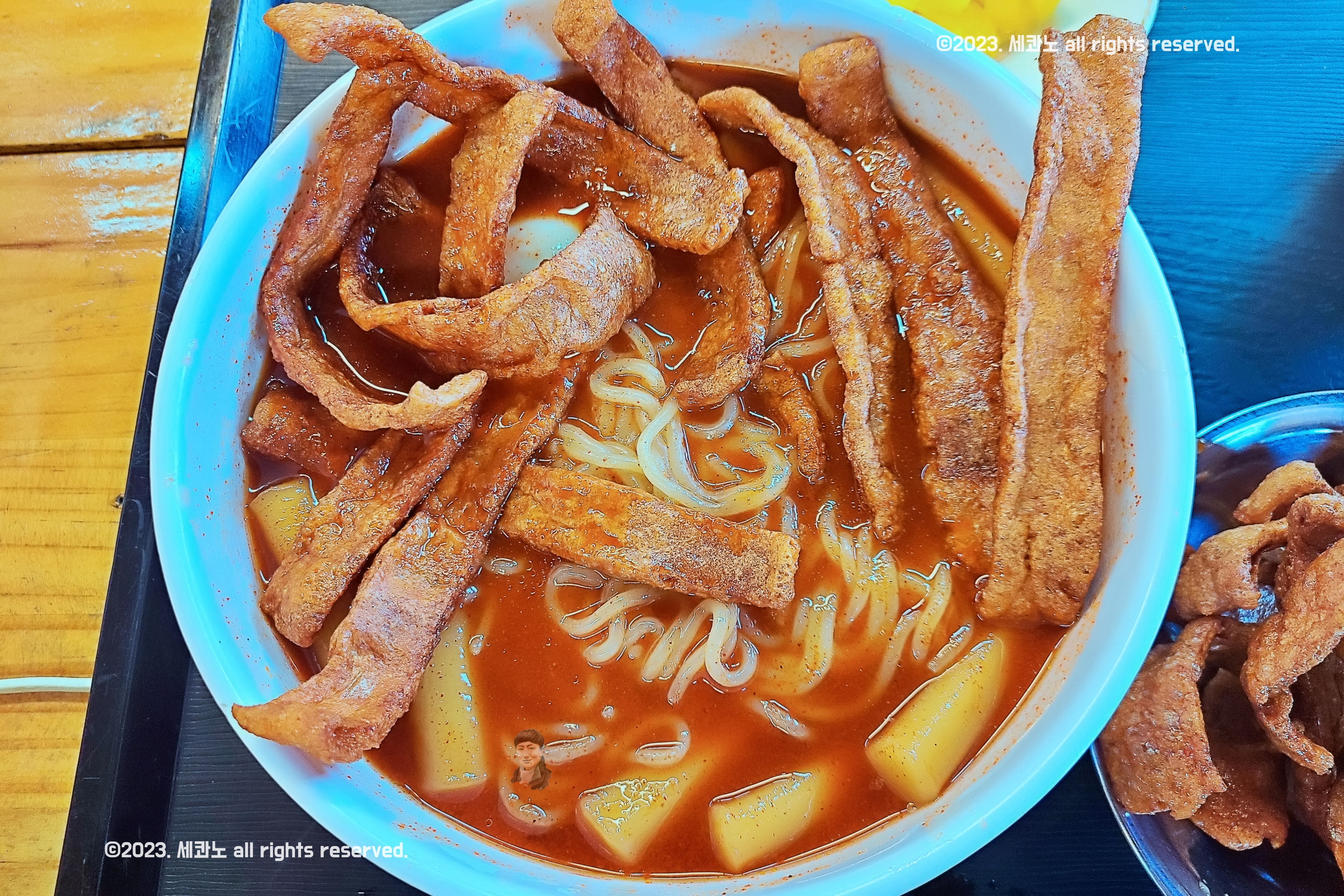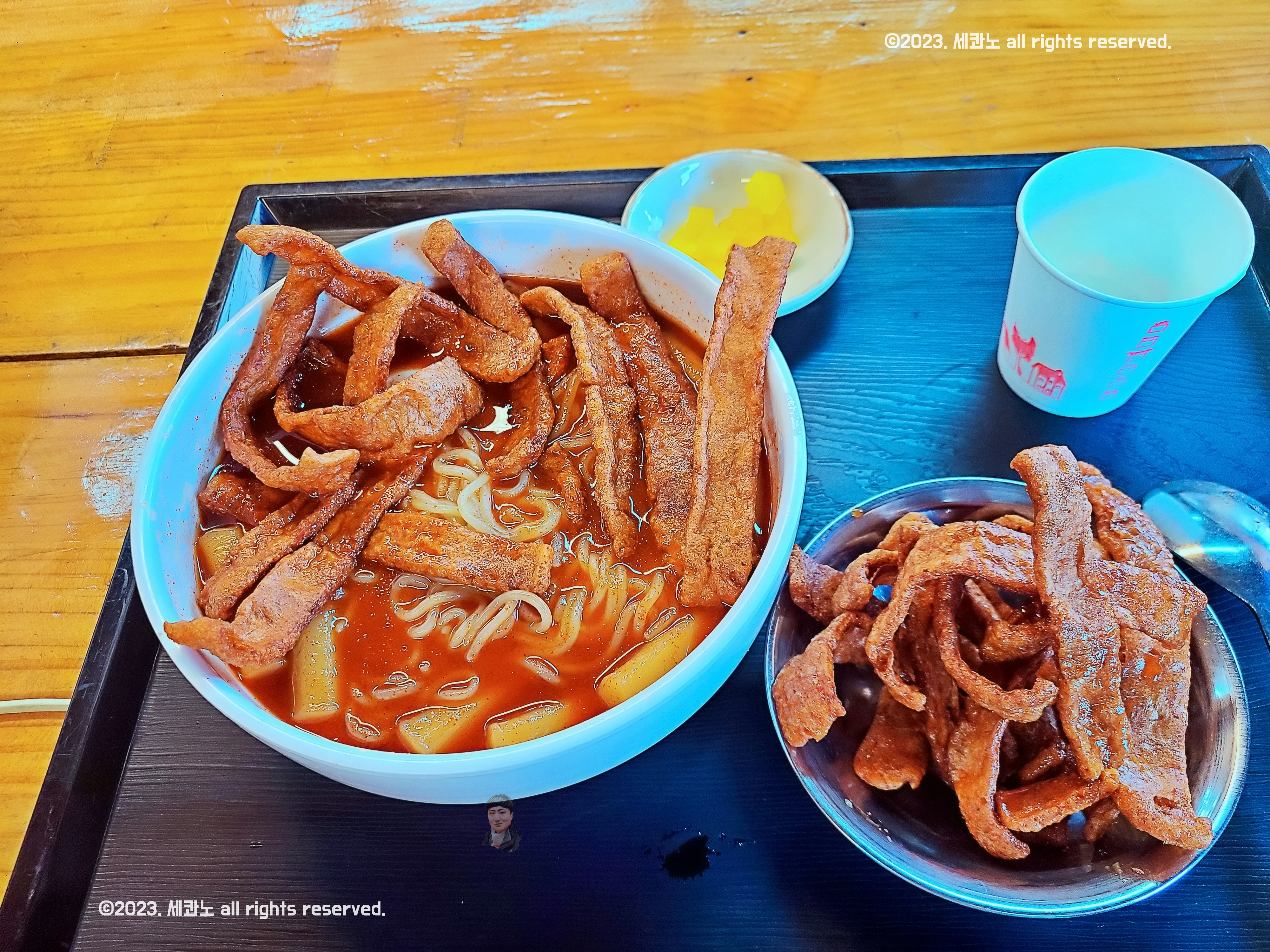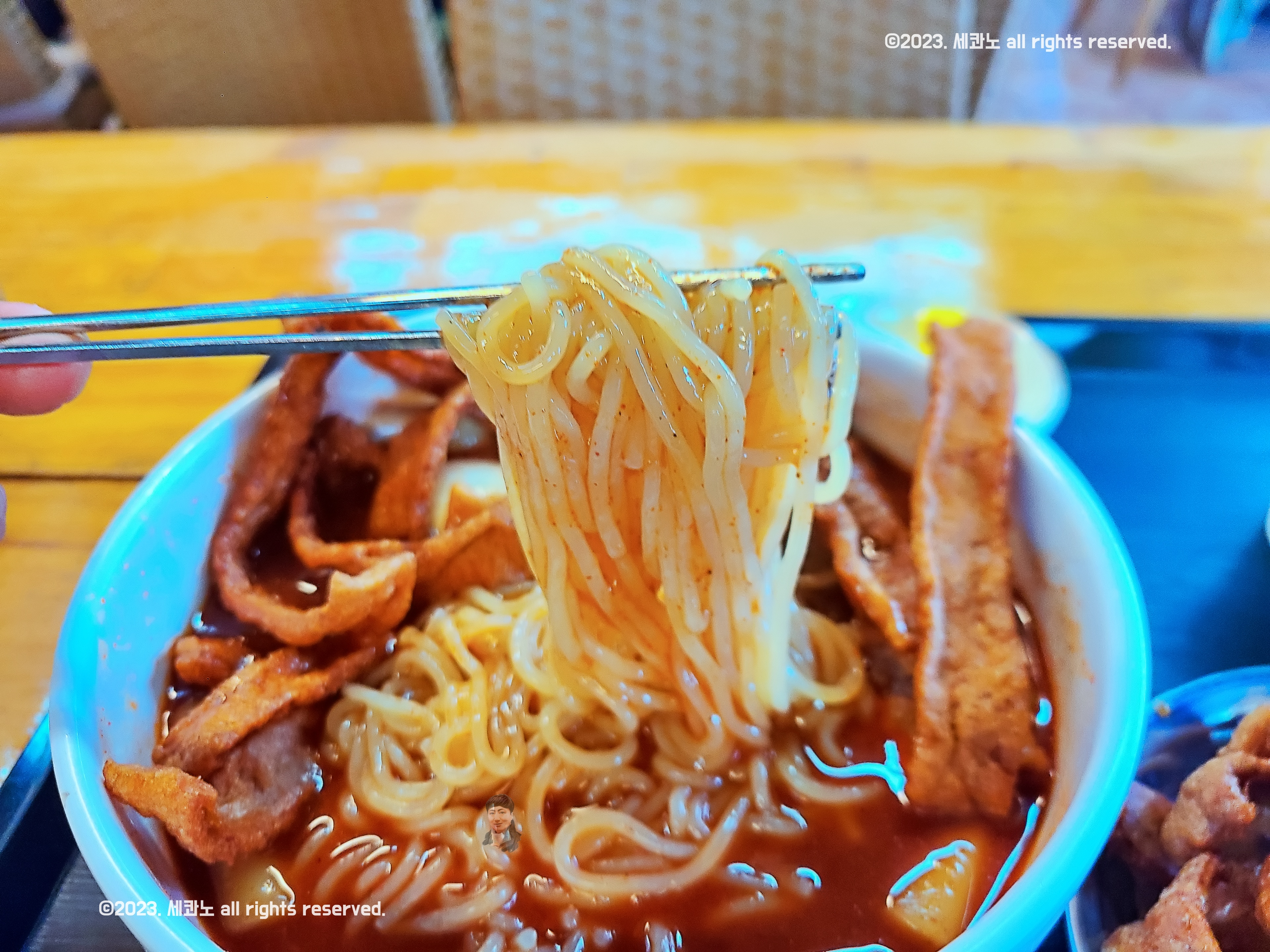 위에 올라간 오뎅튀김 토핑, 사리가 아닐까 싶고