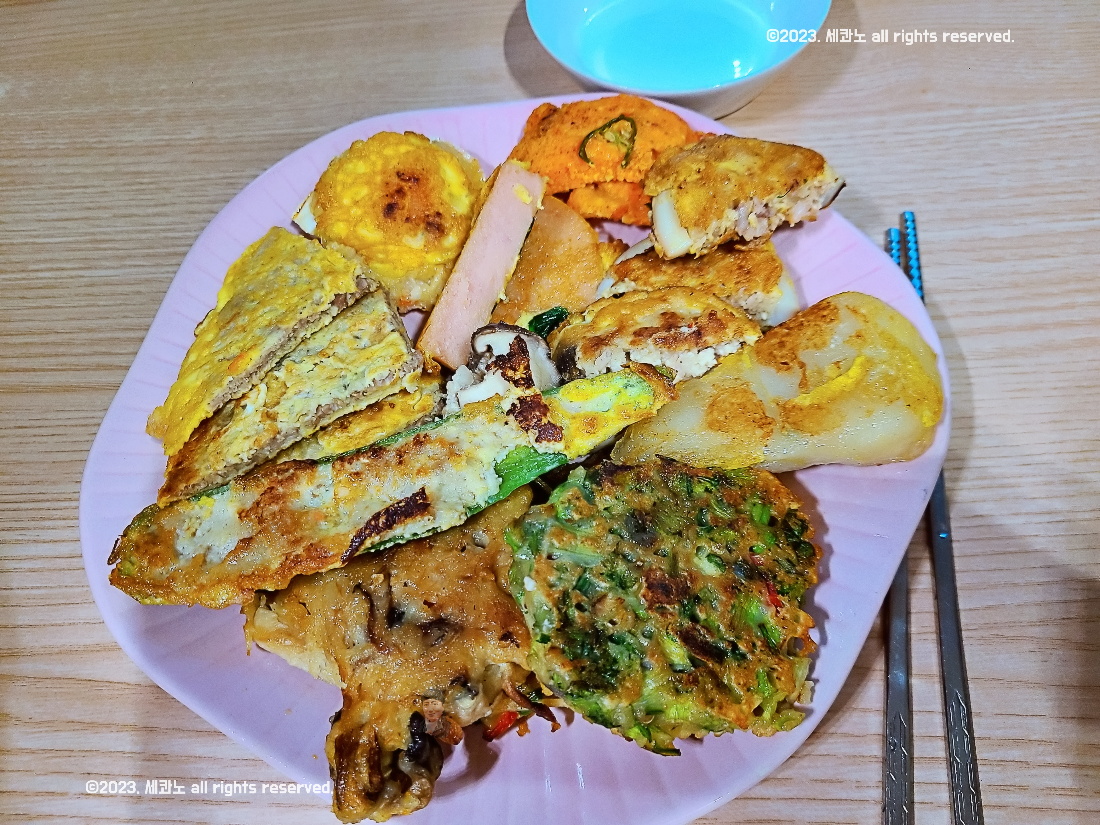 굳이 기름을 더할 필요 없이 그대로 부치면 되고