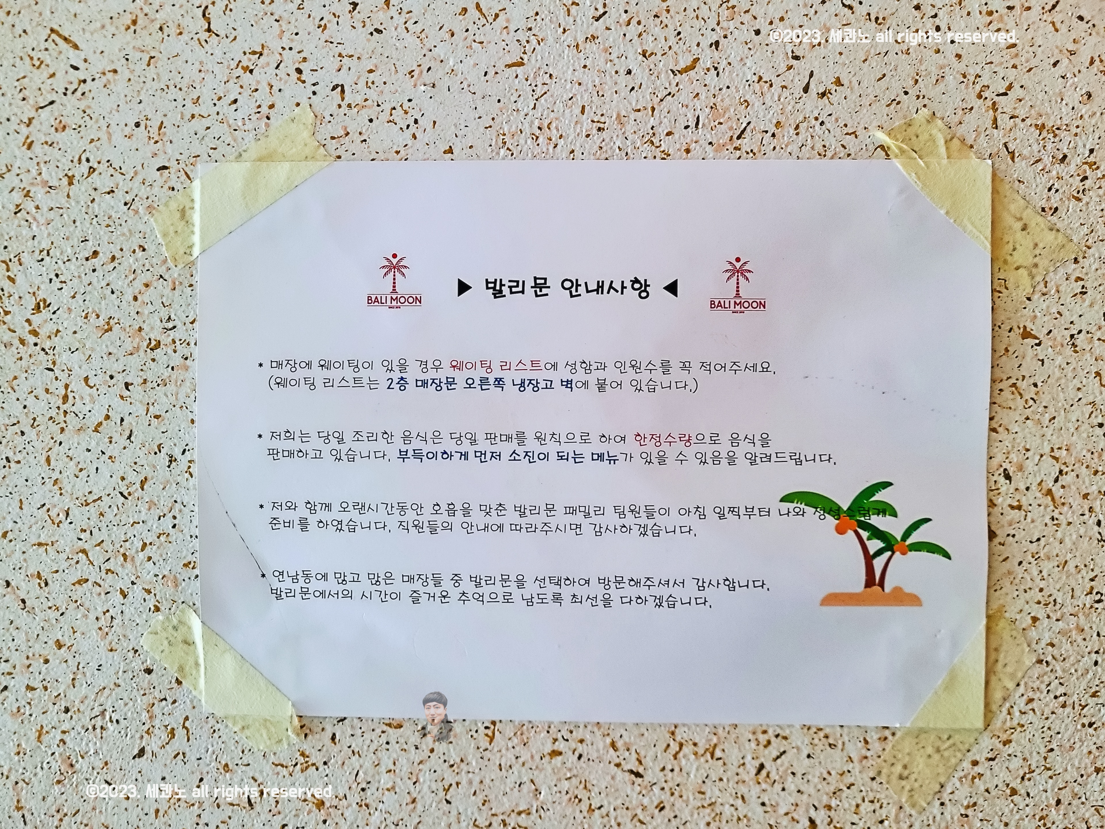 매장 문 오른쪽 냉장고 벽에 붙은