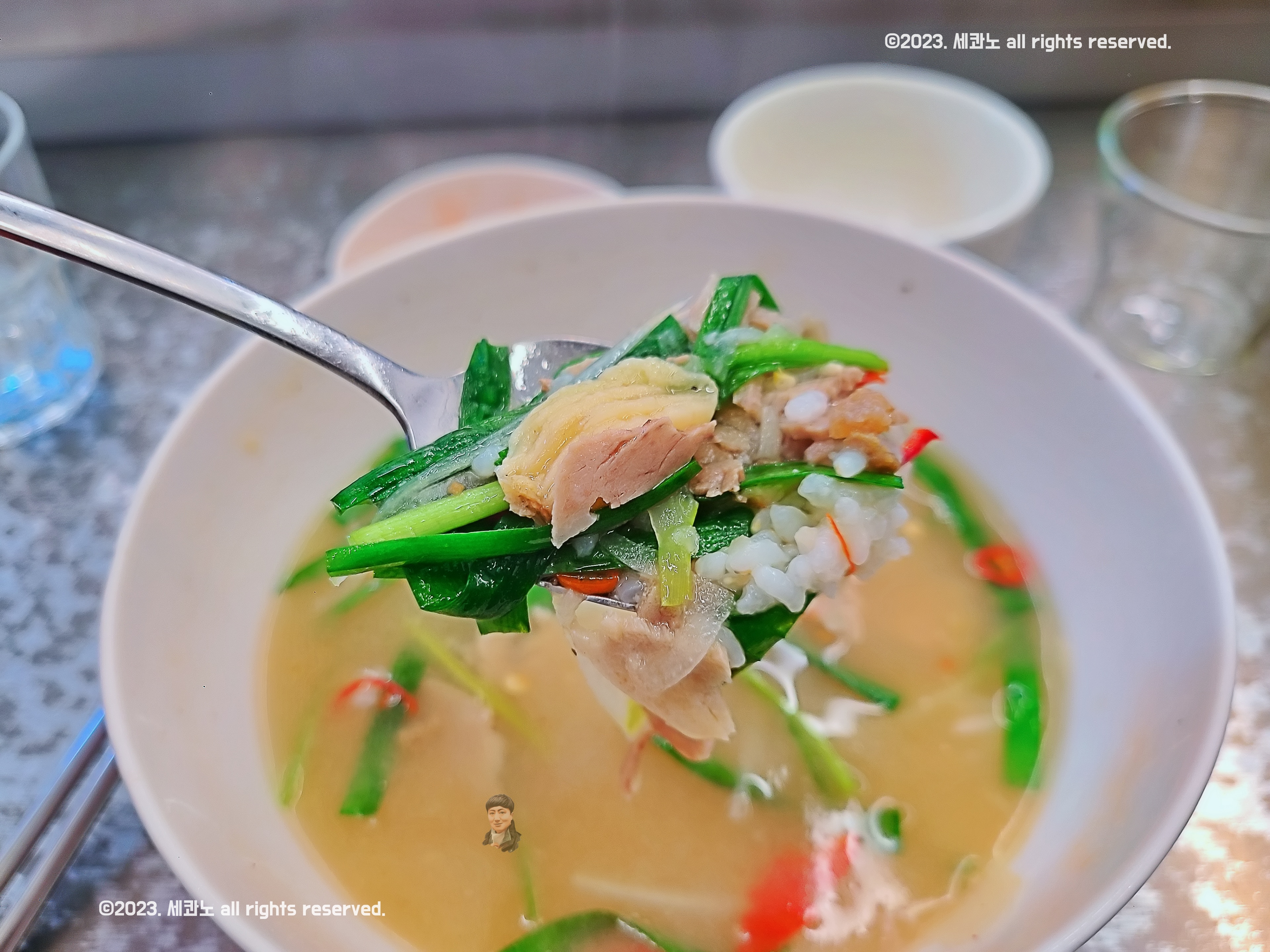 그렇게 돼지고기의 맛과 닭육수가 섞인 맛이었다.