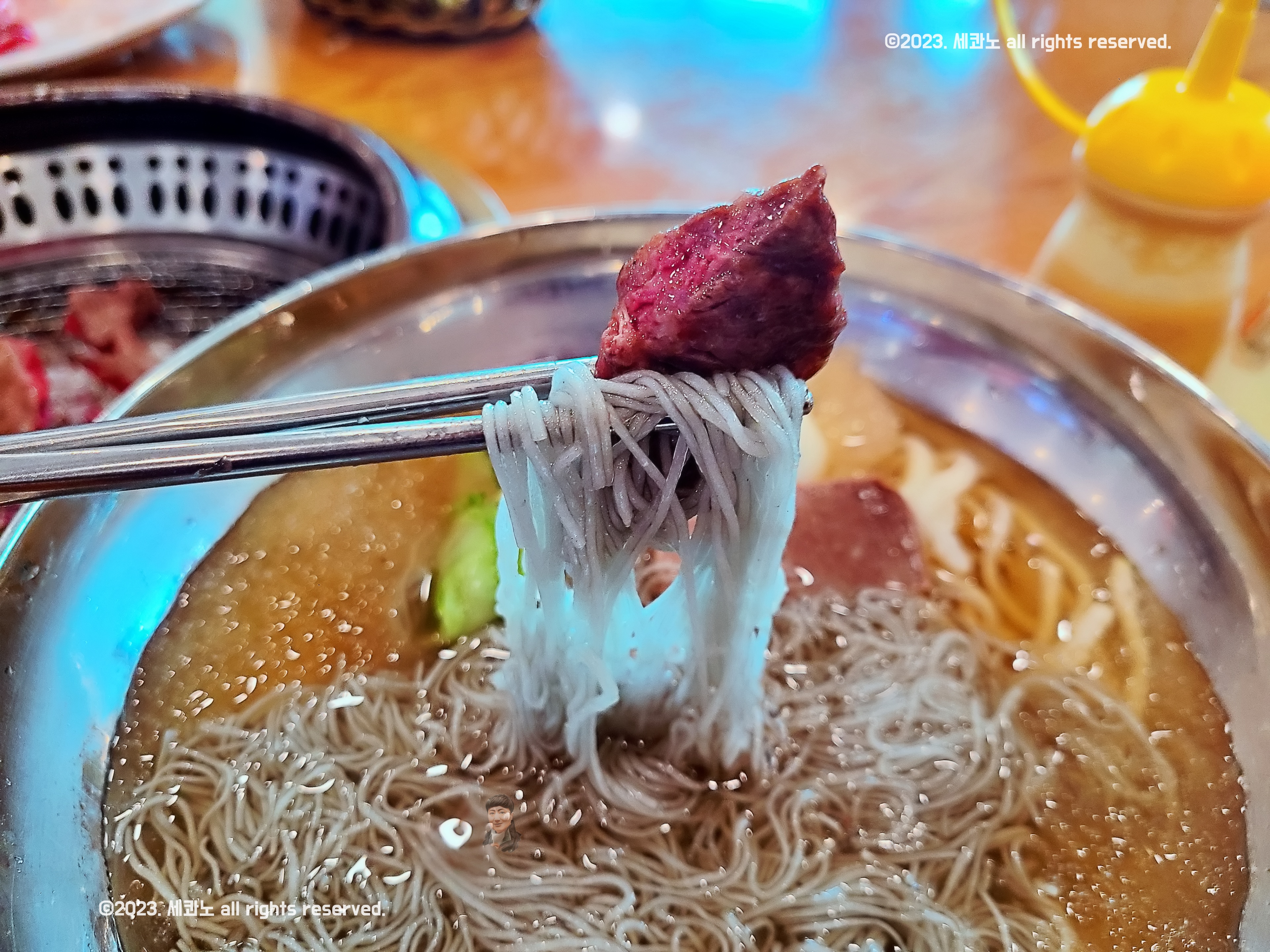 분명 냉면 면에 한우를 싸 먹는..